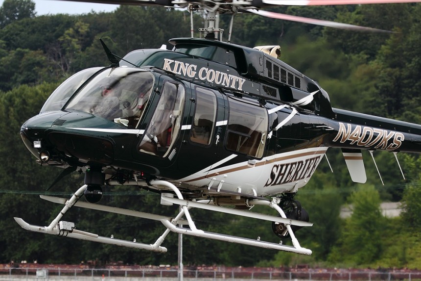 Throughout the previous day and morning of the show, helicopters flew into Seattle’s Boeing Field for the event. Helicopters from the U. S. Border Patrol, Coast Guard, Army, together with various Law Enforcement Authorities joined others from Medivac providers, local T. V. news channels, flying schools as well as private owners. By lunchtime around fifteen different types were on static display in the museum’s large parking lot and all of those attending were opened up and available for the visitors to take a look inside.