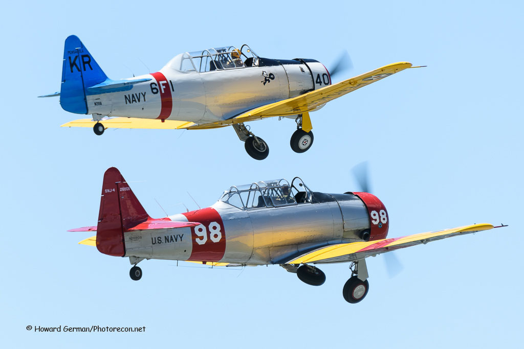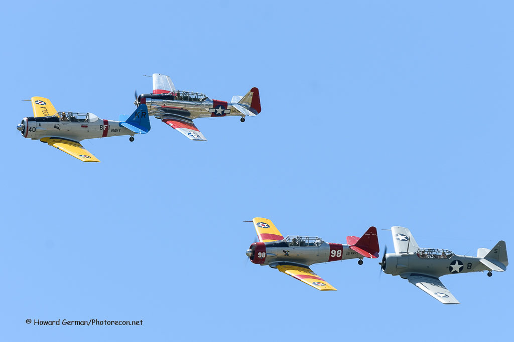 The air show’s grand finale featured the GEICO Sky-Typers’ North American SNJ-2 six-ship aerobatic team flying an eighteen minute low-level demonstration. All three days prior to their demo; the team flew around the local area sky-typing. The GEICO’s appearance was Reading’s first time ever six-ship formation team. Friday and Saturday nights following the air show, the big museum hangar was cleared for a swing dance dinner to the sounds of Artie Shaw’s USN and Glenn Miller’s USAAF Big Bands.