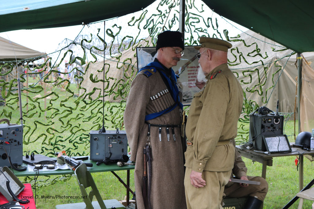 Staked out among the sprawling encampments were more than 1,700 WWII military re-enactors accurately portraying the lives of Allied American, British, Australian and Russian troops along side Axis German soldiers and, combat and support units representing many foreign nations. Weekend attendees examined up close extensive personal collections of weapons, firearms, military gear and authentic accessories as well as two hundred military vehicles that included cars, motorcycles, jeeps and tanks. Many WWII items were offered for public sale from a one-hundred-and-twenty-plus vendor militaria flea market. Throughout the day, re-enactors put their equipment and training to use when they engaged in a skirmish between the French Resistance with America allied help and German troops around a battle-scarred French Village. Later, separate battles ensued between Chinese Nationals and Imperial Japanese Forces in the Pacific Theater, as well as American infantry attacking a German Wehrmacht column of armor vehicles.