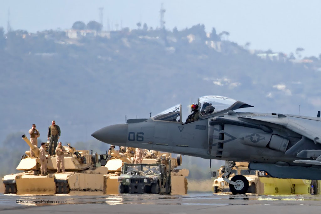 Famous for their Marine Air Ground Task Force (MAGTF) demo, and the always impressive United States Navy Demonstration Team, the Blue Angels. The show also included several civilian aerobatic acts, as well as a race between John Colver in his AT-6 ‘War Dog’ and Chris Darnell in the ‘Shockwave’ jet truck. The Marines also conducted separate capabilities demonstrations of their MV-22 Osprey, AV-8B Harrier, and F-35B Lightning II.