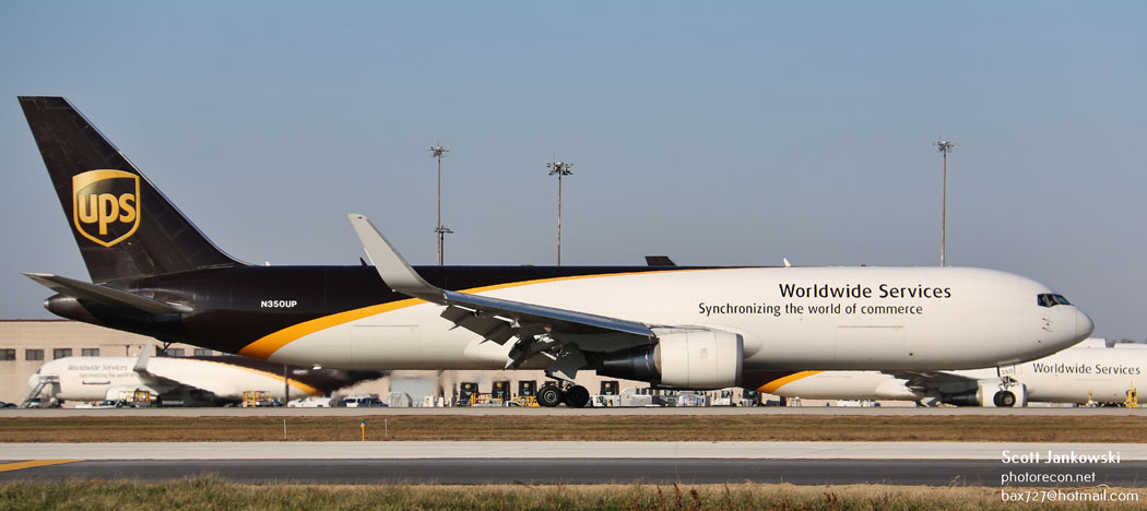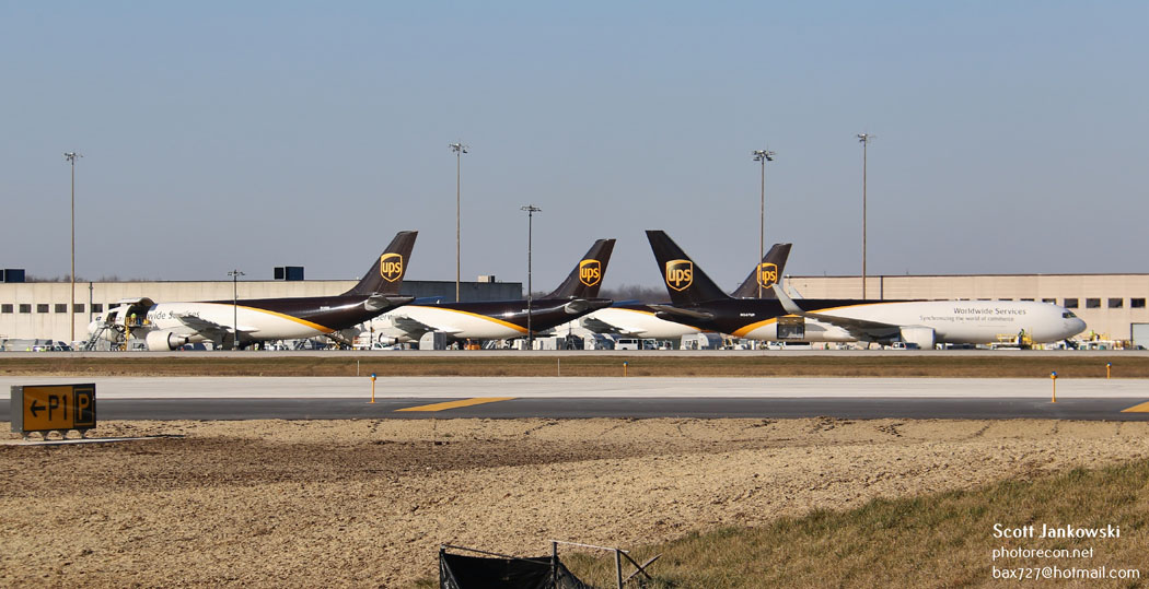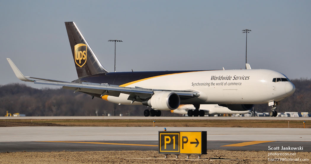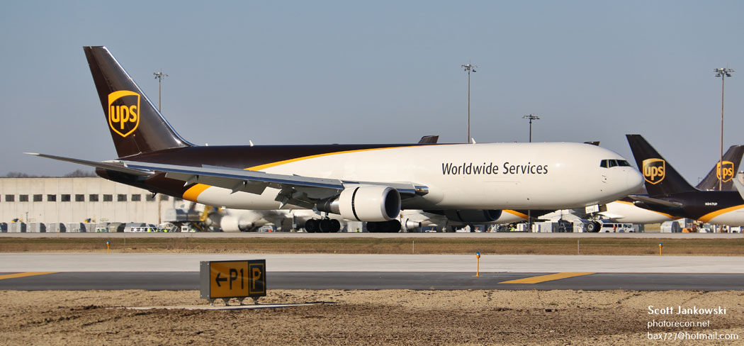 During my visit, several UPS aircraft were present and included several examples of the Airbus Industries A300F4-622R and also the Boeing 767-34AFER aircraft. It is worth noting that the 767 aircraft were both equipped with and without winglets. UPS currently operates forty-nine of the widebody Airbus Freighters and eighty-four of the widebody Boeing 767-300 Freighters and has an additional four aircraft on order. The A300 can accommodate a total of twenty-nine positions of freight and has a maximum payload of 121,300#’s. The Boeing 767-300 can accommodate a total of thirty-one positions of freight and has a maximum payload of 132,200#’s.