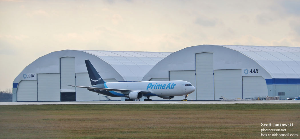 Amazon Air was founded in 2015 and has operated out of Rockford since 2016 employs approximately 1,200 people and can sort up to 300,000 shipments. The Amazon ramp can accommodate up to eight aircraft and uses a mix of contracted carriers on flights in and out of Rockford. These airlines include ATSG Holdings (ABX Air and Air Transport International) and Atlas Air using a mix of Boeing 767-200 and 300 series widebody freighters. On the day of my visit both types were seen with ABX Air having a Boeing 767-281BDSF painted in their house colors operating a flight to Phoenix AZ. The -200 series 767 Freighter can accommodate 20 positions of freight and has a payload of 99,000#’s. Air Transport International (ATI) had a pair of -300 series Freighters at Rockford this day a Boeing 767-332ERDSF and a Boeing 767-323ERBDSF, these 767’s can accommodate up to 26 positions of freight on the main deck and up to 15 positions in the belly with a maximum payload of 121,00#’s. Atlas Air had a Boeing 767-306ERBCF at Rockford on this day, their 767-300 Freighters can accommodate up to 24 positions of freight on the main deck and up to 24 positions in the belly with a maximum payload of 116,800#’s.