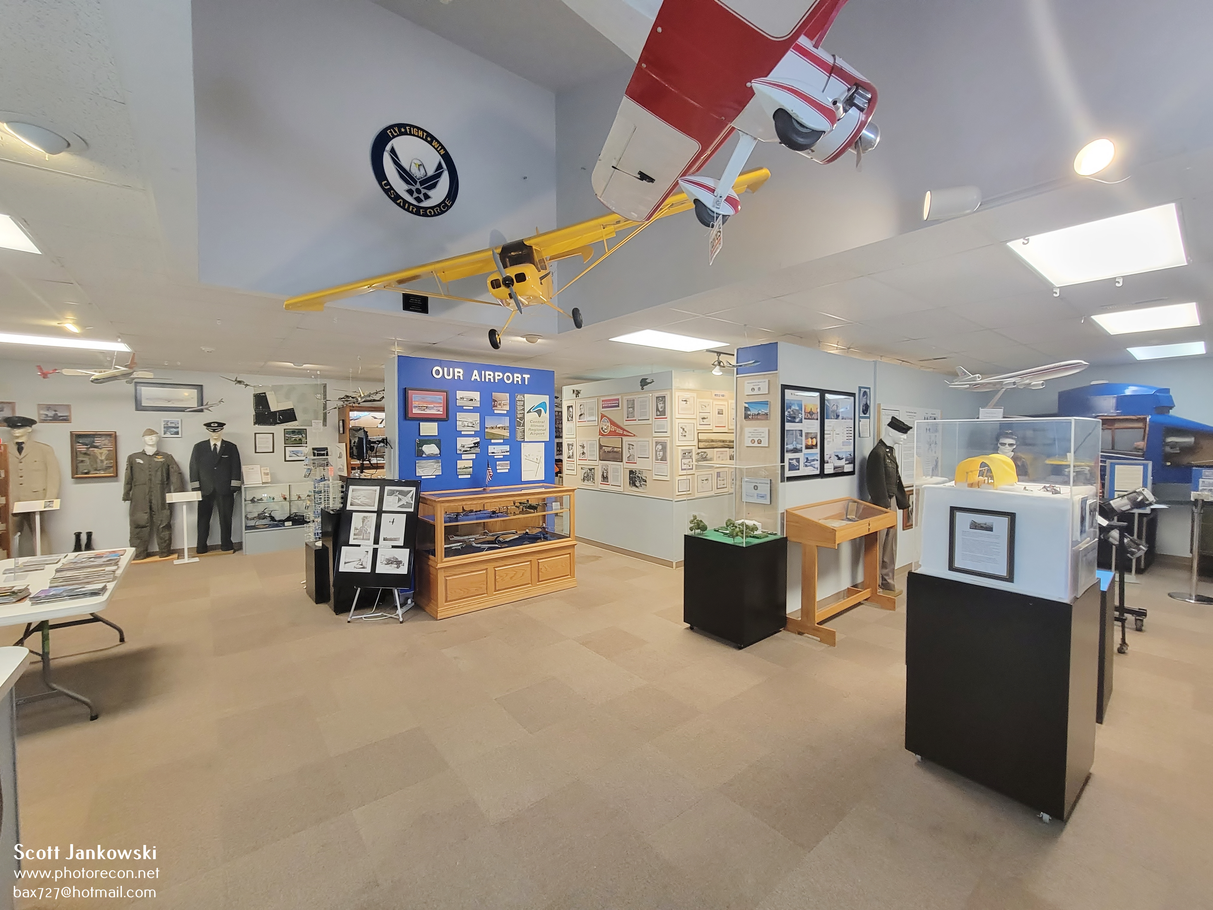 The twin cities of Bloomington and Normal Illinois are located roughly 135 miles Southwest of Chicago Illinois and 162 miles Northeast of St. Louis Missouri. Approximately 130,000 people call the 2 cities home and is also the headquarters for State Farm Insurance and Country Financial. Like any city of this size, airline service is important and Bloomington Normal is no different. The Central Illinois Regional Airport (KBMI) is located 3 miles East of Bloomington and is currently served by 5 airlines. The current terminal was opened in 2001 and has a total of 6 jetways and features 2 runways, 20/2 and 29/11. This is where we find the Prairie Aviation Museum.