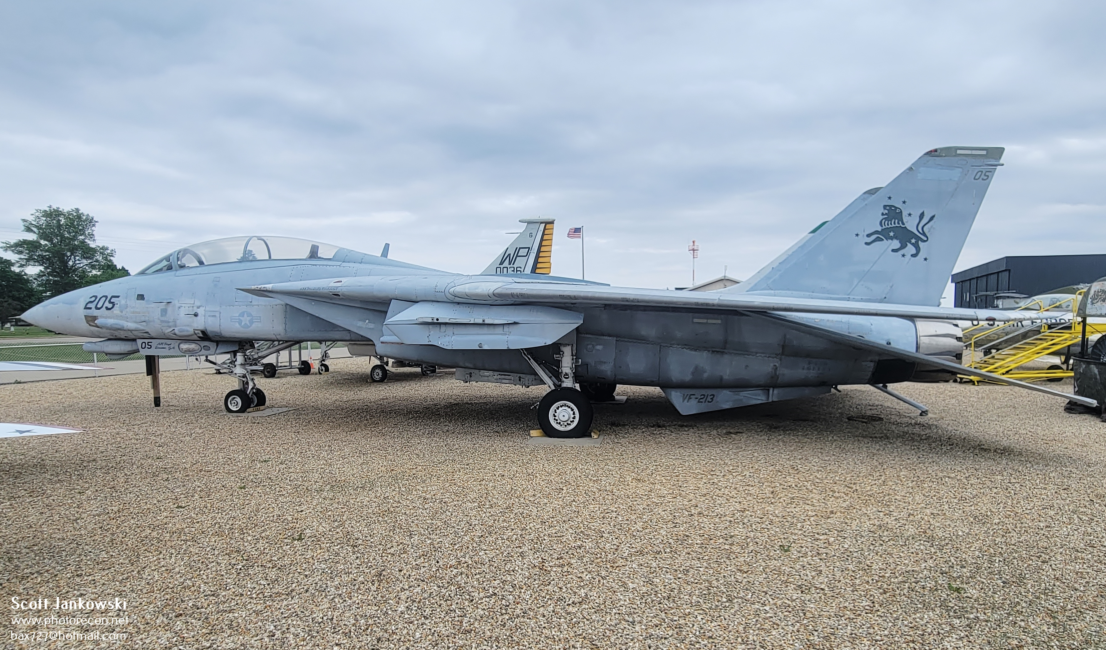 The final aircraft on display is a Grumman F-14A Tomcat, bureau number 161163 which served in the U.S. Navy from 1981 to 2006. This 2-seat supersonic, swing wing, air superiority, multi-role fighter was designed and built to replace the iconic McDonnell Douglas F-4 Phantom. This is one example of 712 built before production ended in 1991 and has served on numerous aircraft carriers including the U.S.S. Eisenhower, Kennedy, Constellation, and last served with VF-213 aboard the U.S.S. Theodore Roosevelt. This F-14 was converted to a F-14D in 1991 which gave the aircraft an upgraded avionics package, radar, and more powerful engines. This particular aircraft was flown directly to the museum in 2006 and remains the only aircraft to do so.