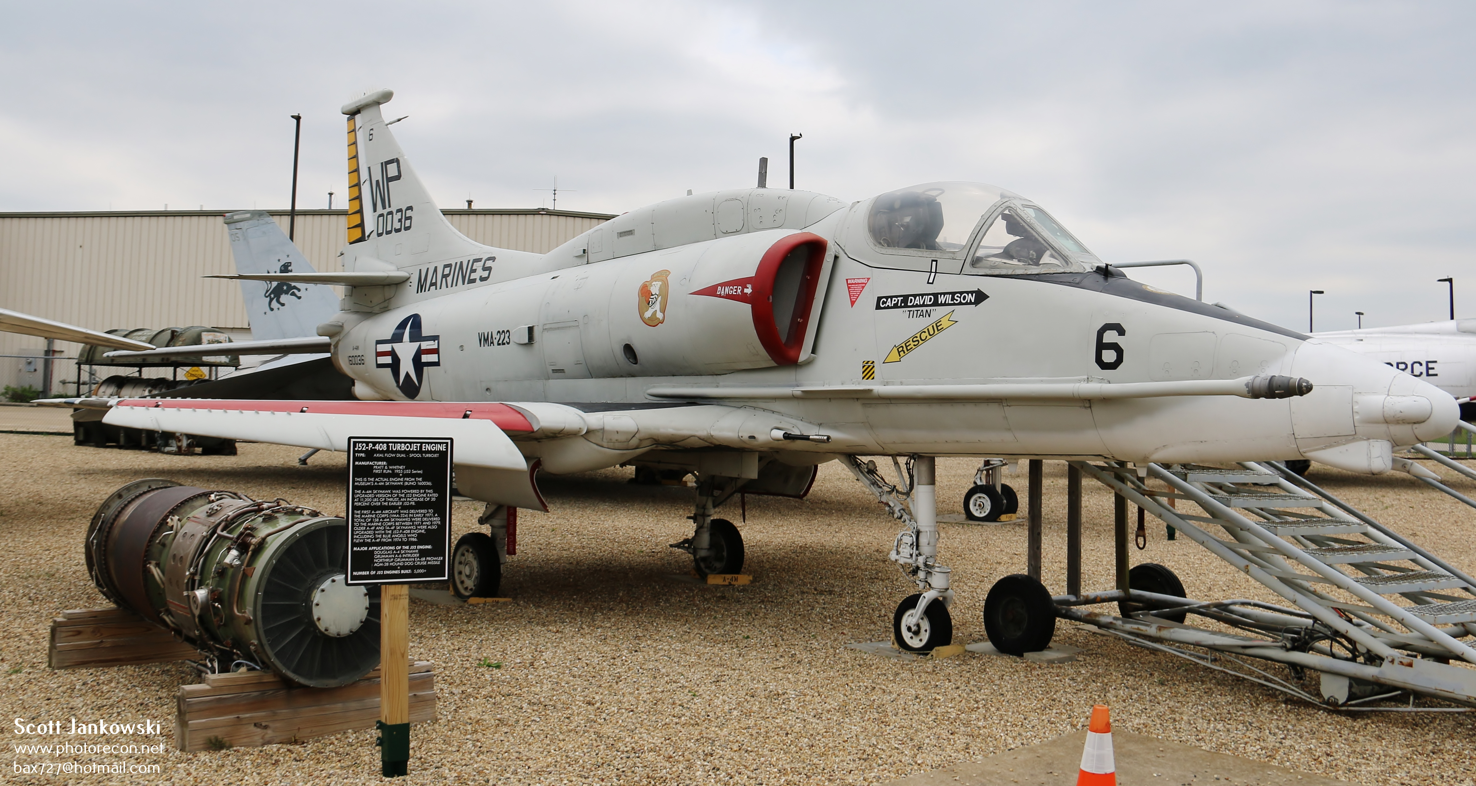 A 1976 vintage McDonnell Douglas A-4M Skyhawk, bureau number 160036 is on display and is also on loan from the National Naval Aviation Museum down in Pensacola FL. A total of 2,960 A-4’S of all types were built during its production run from 1954 to 1979. The A-4 is a single seat attack aircraft that carries the nicknames “Scooter” and “Heinemann’s Hot Rod” the name of the aircraft’s designer. The museums A-4M is one of 160 built specifically for the U.S. Marine Corps and spent the majority of its time serving with VMA-331 “The Banshees” and VMA-223 “The Bulldogs” The museum acquired the aircraft in 2000 and was last based at Naval Air Station (NAS) Memphis flying for Marine Air Group (MAG) 42. The aircraft carries the names of two Prairie Aviation Museums who flew A-4’s David Wilson and Chuck Spreitsma who actually flew this very A-4.