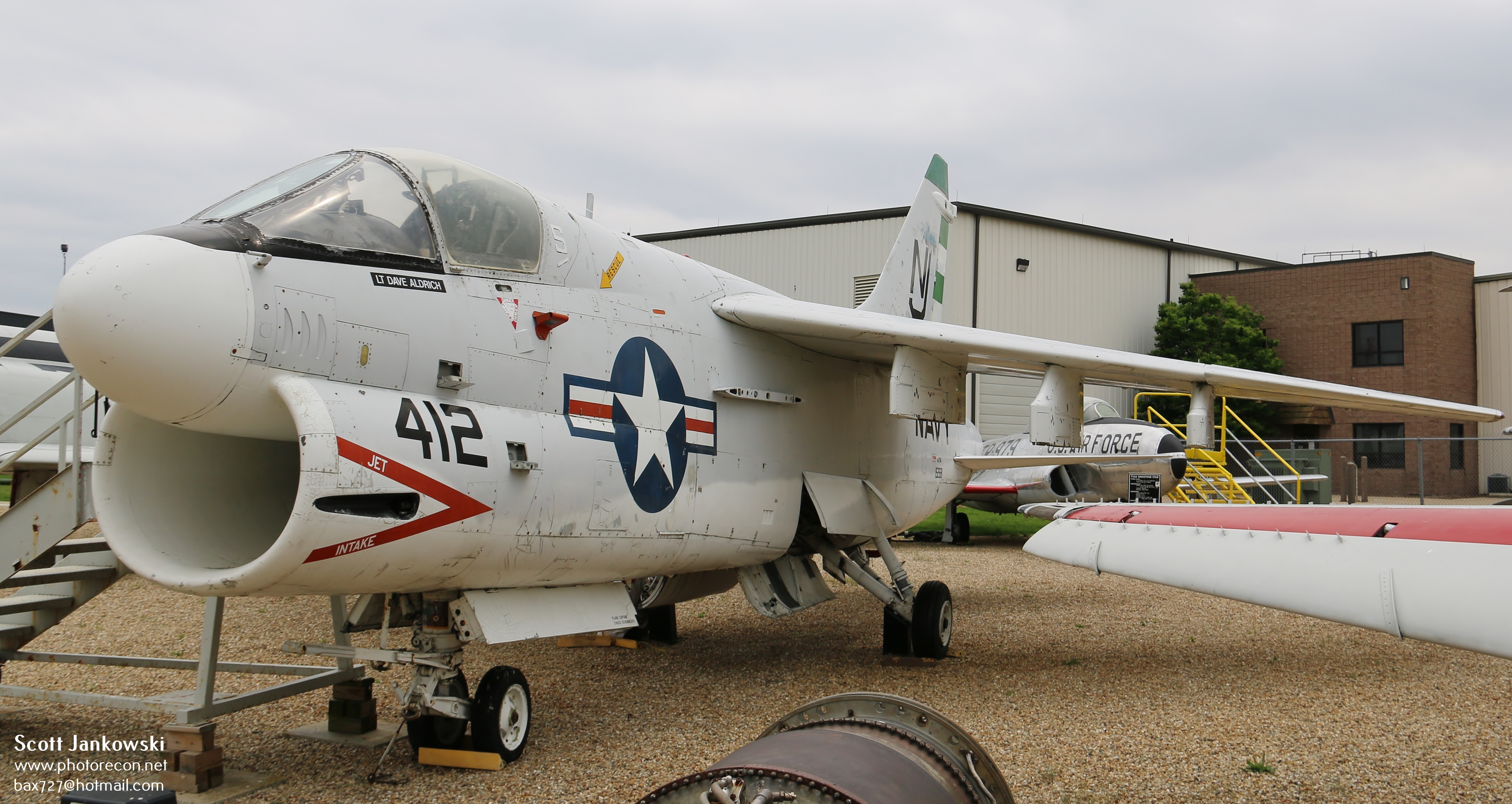 On display is a 1967 built single seat tactical attack aircraft the Voight A-7A Corsair II, bureau number 152681. This aircraft, like many others, is also on loan from the National Naval Aviation Museum located at Pensacola FL. This is one of 1,569 A-7’s manufactured before production ended in 1984. The A-7 was a workhorse of both the U.S. Air Force and Navy and saw extensive service in the Vietnam War. The museum’s A-7 carriers the name of David Aldridge a former A-7 pilot and Prairie Aviation Museum member. This A-7A last saw service with VA-203 “Blue Dolphins” and arrived at the museum in 1991.