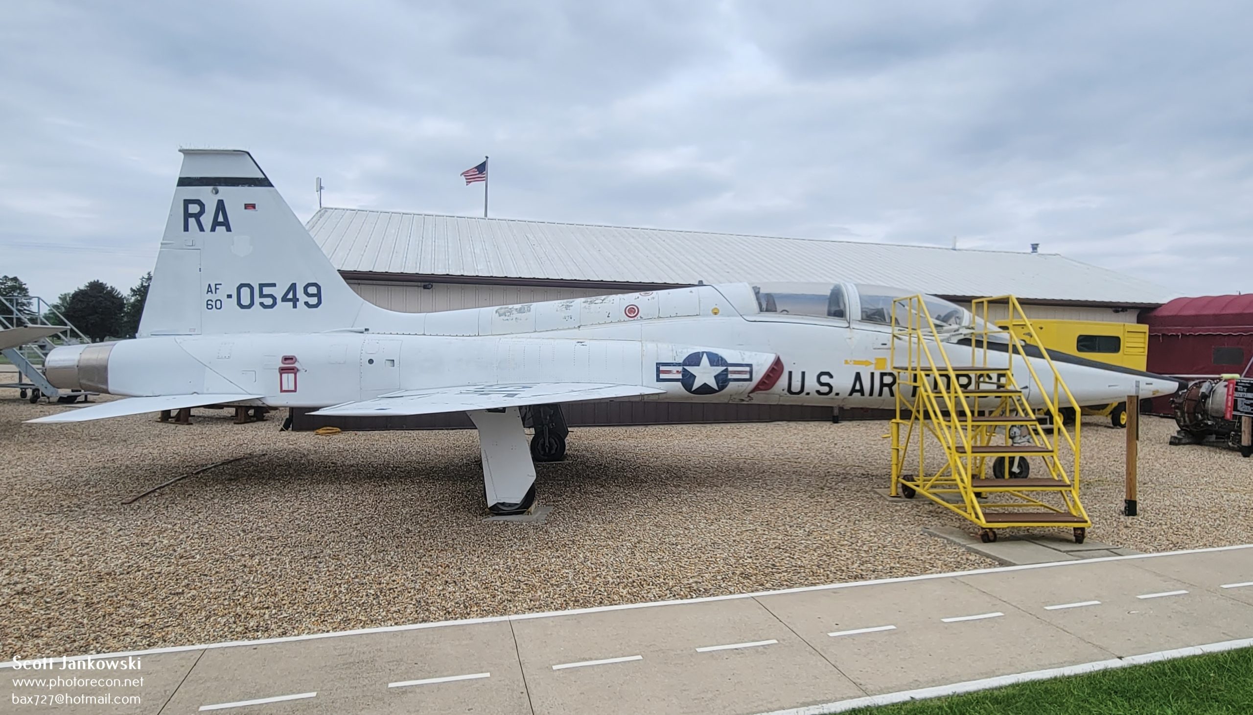 The second trainer is a 1961 built, 2 seat supersonic Northrop T-38A Talon, serial number 60-0549. This was one of over 1,100 delivered to the United States Air Force before production would end in 1972. This example served with numerous training squadrons located at Randolph Air Force Base TX, Tyndall Air Force Base FL, and Williams Air Force Base AZ before being transferred to the Chanute Air Force Base IL in 1975 to serve as a ground trainer. The museum would acquire this T-38 in 1993 on permanent loan from the United States Air Force Museum located at Dayton OH.