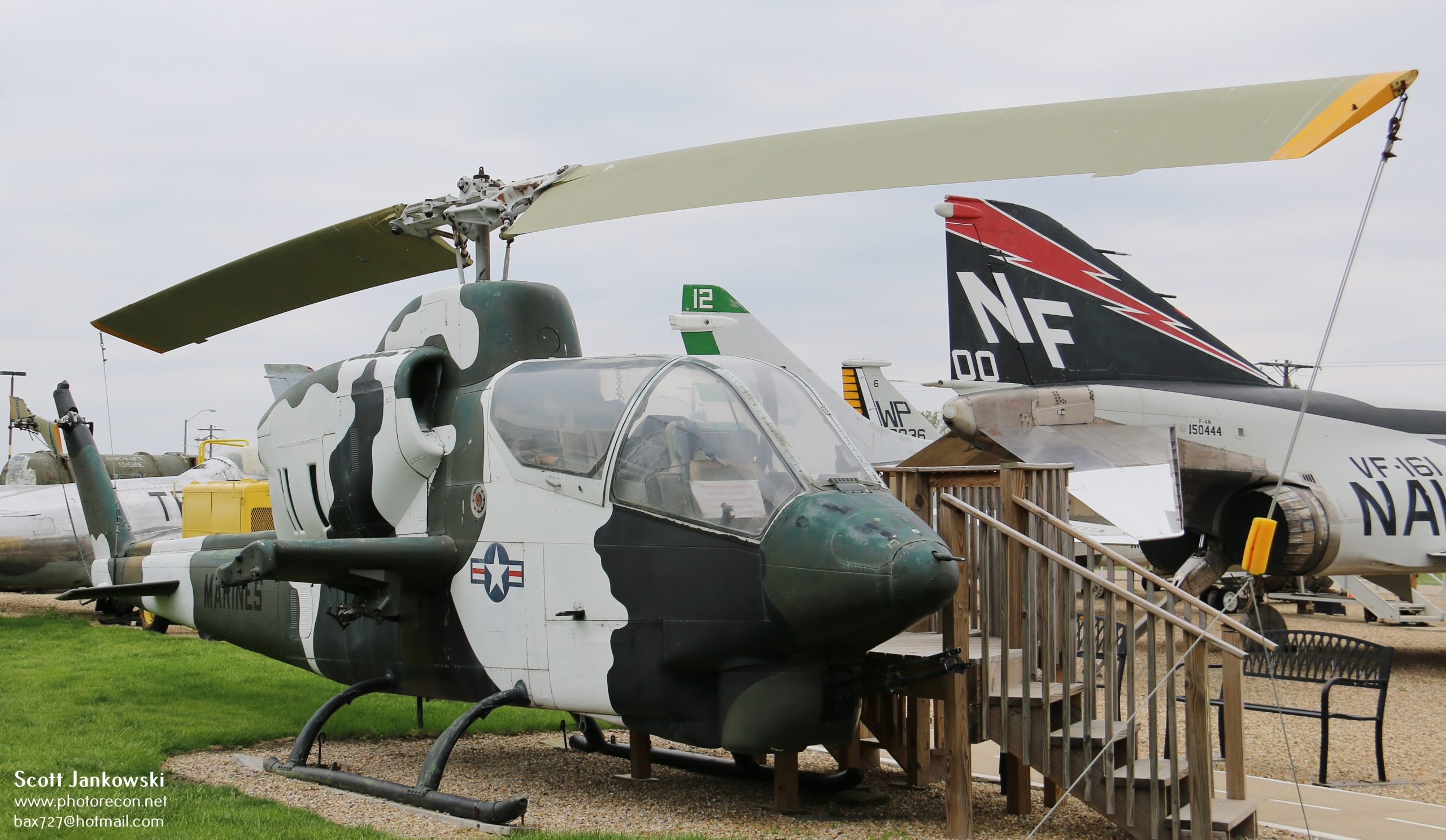 The other Bell Helicopter on display is a twin-engine Bell AH-1J Sea Cobra with bureau number 157771. A total of 69 AH-1J Sea Cobras were built for the U.S. Marine Corps, this is an upgraded version of the AH-1G Cobra which has only 1 engine. This specific 2-person attack and close support helicopter entered service in 1970 and was stationed at Marine Corps Air Station (MCAS) New River NC, Camp Pendleton CA, and Kaneohe Bay HI before the museum would acquire it under loan courtesy of the National Naval Aviation Museum located at Pensacola FL.
