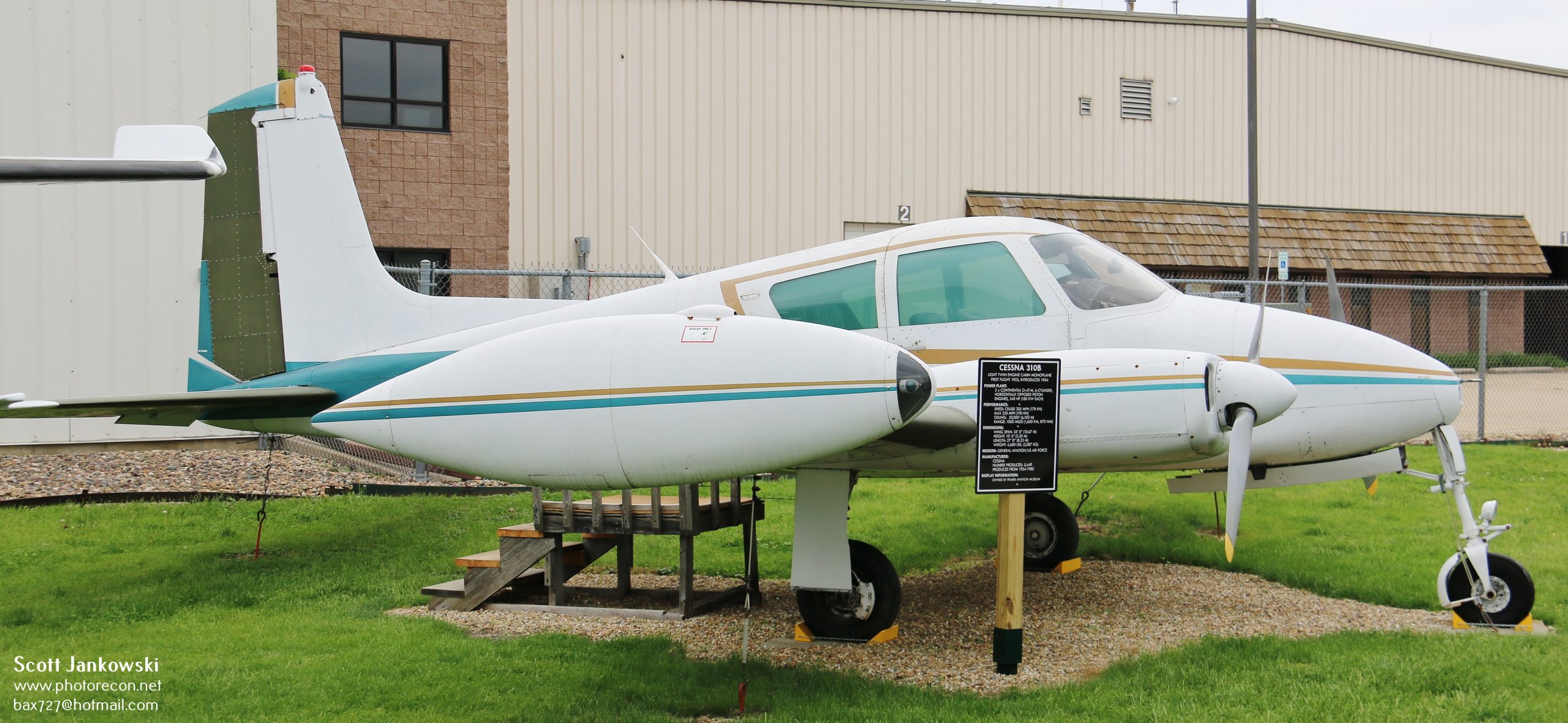 The civilian aircraft currently on display include N900S, a 1958 built Cessna 310B, serial number 35742. A total of 5,449 of this twin engine 4 to 6 seat aircraft were produced during its production run from 1954 to 1980.