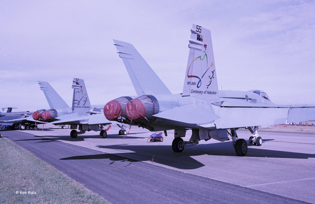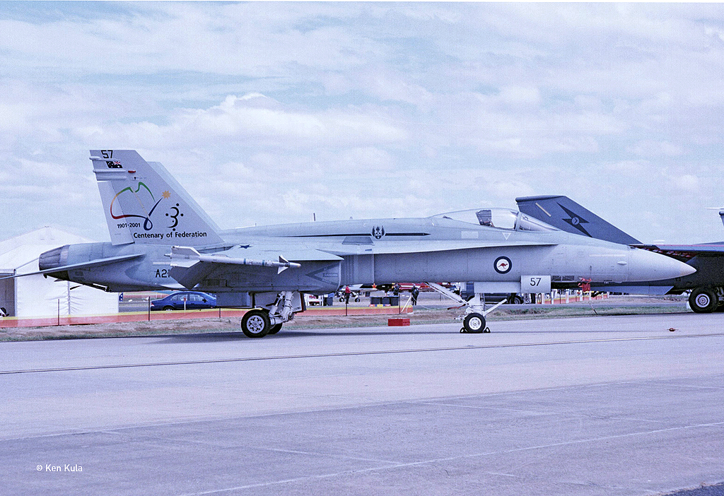 The home team displayed a lot of aircraft too. The Royal Australian Air Force displayed a new Super King Air 350 trainer/transport, a BAE Hawk trainer/Lead-in Forward Air control trainer, F/A-18s adorned with Centennial colors, and a pair of soon-to-be-retired Aeromacchi MB-326 trainers. HS-748 transports, a Boeing 707tanker/transport, the mighty F-111 and Caribous too.