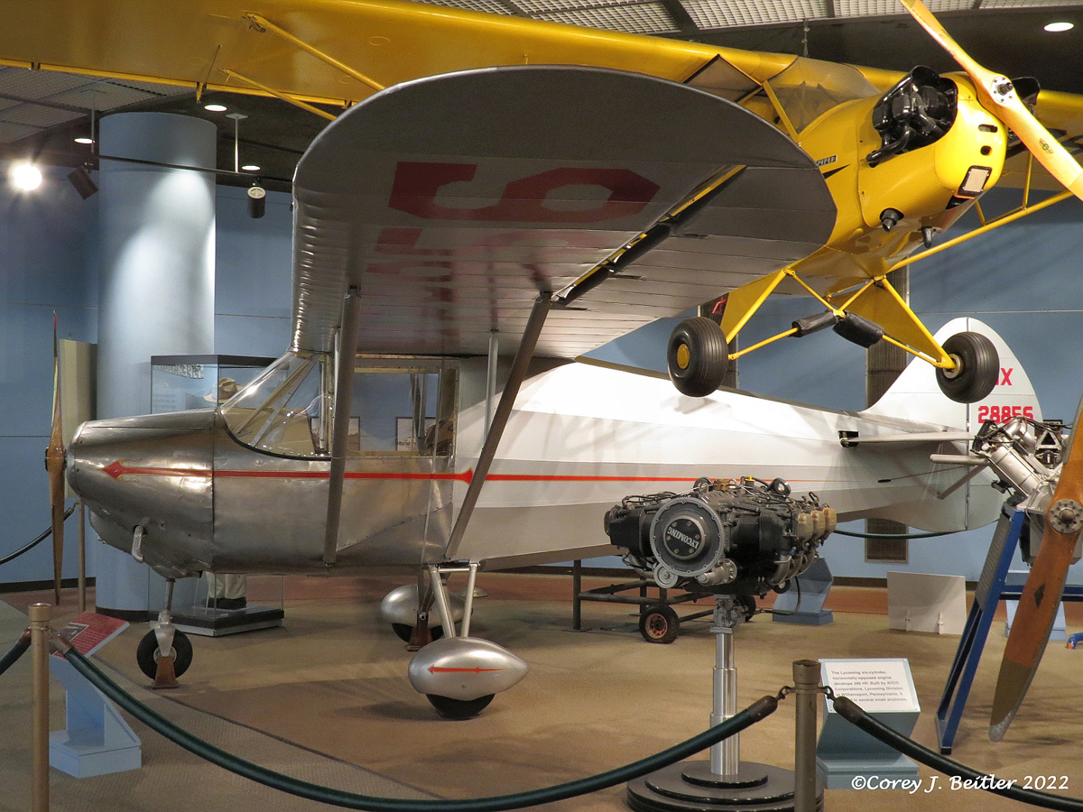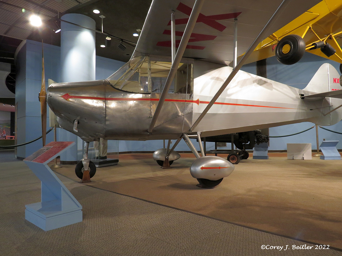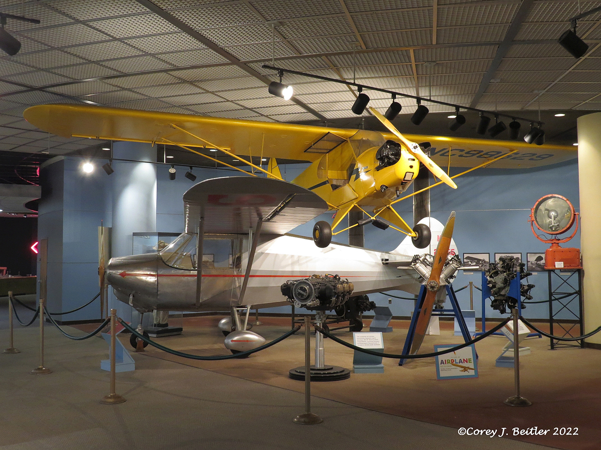 A small section of the Industry and Transportation gallery is dedicated to an exhibit focusing on aviation. Although the display of artifacts is small, the collection tells a small part of the story of the history of aviation in Pennsylvania. The small collection of artifacts includes two airplanes, four aero engines, photographs, and some smaller artifacts. All the artifacts on display have a unique connection to aviation history in the state. In the case of two of the artifacts on display, the rarity of both of them makes their inclusion in this small collection intriguing to anyone interested in aviation history.