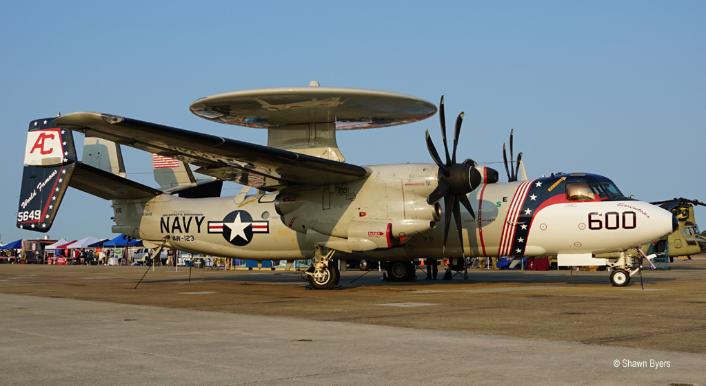 This was part two of the Maryland/Virginia airshow split so I did not take part in the Friday Media/DOD/STEM activities. I entered Saturday morning through the main entrance. The first aircraft encountered on static was a CH-53 but the second encounter was with a boldly painted E-2C Hawkeye from VAW 123, “Screwtops”. Also at this end of the ramp was a C-2 Greyhound and a CH-47 Chinook displayed with all the panels open.