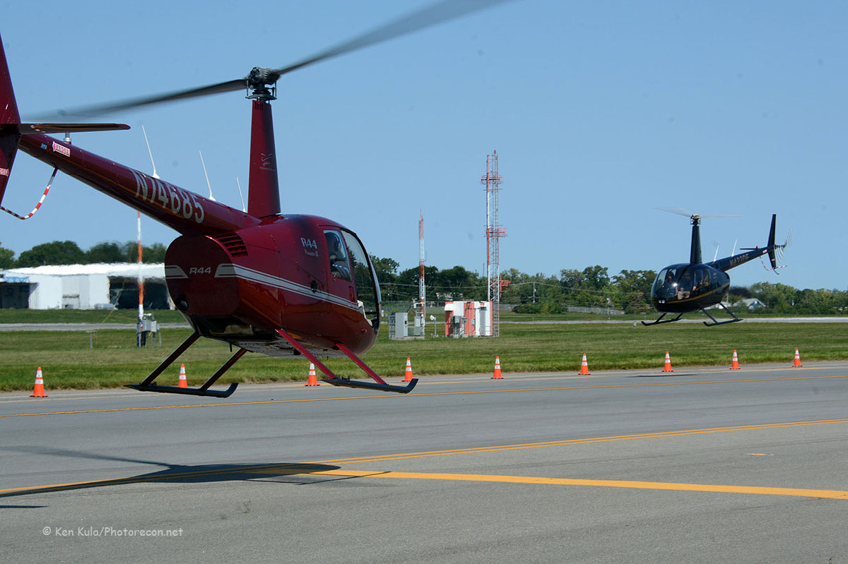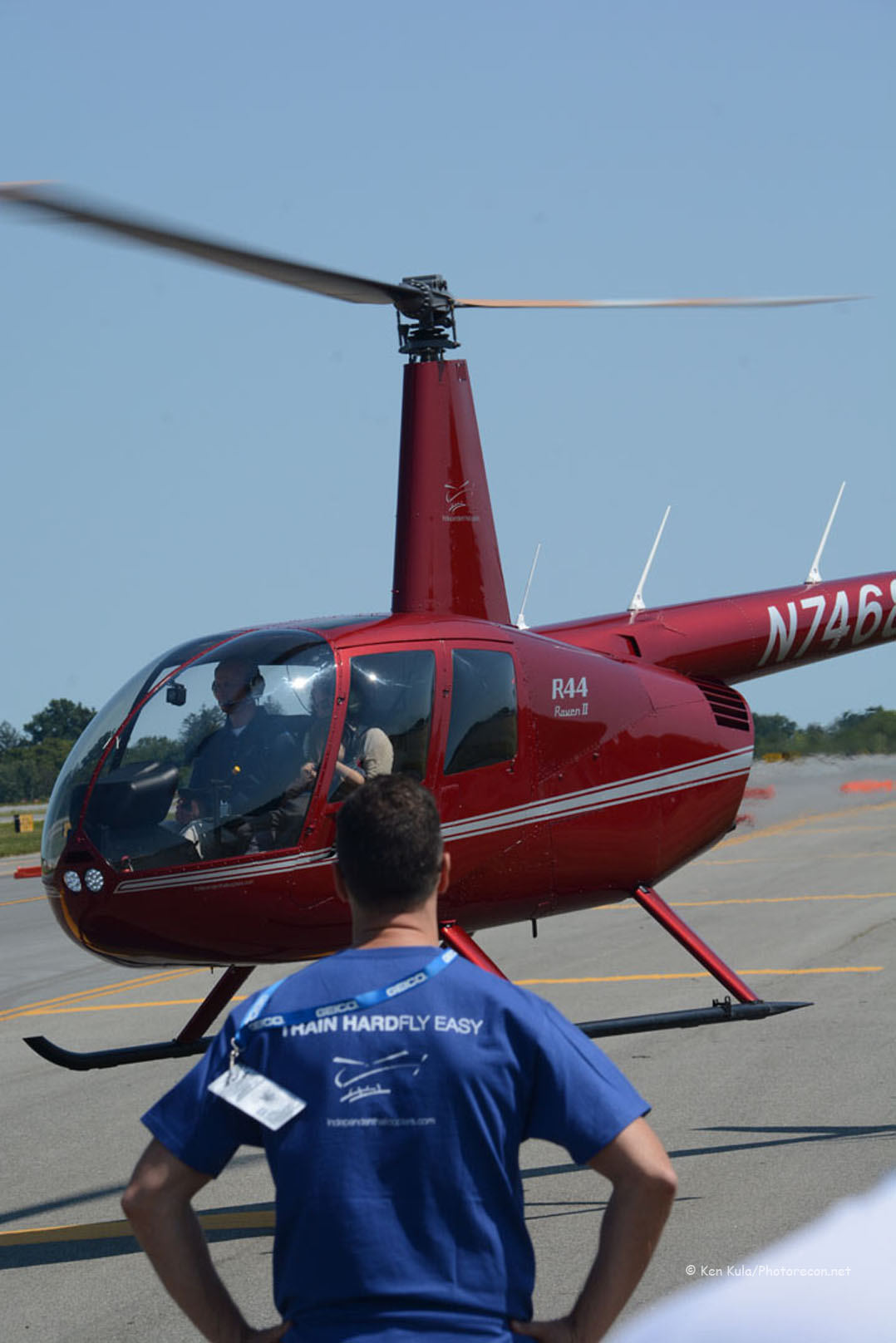 Helicopters were a big part of the New York Air Show, whether behind the scenes or out in front of the spectators. During the shows, the Coast Guard presented a rescue scenario using a Eurocopter MH-65D Dolphin based in Atlantic City during the show. A Navy MH-53E Sea Dragon helicopter was on static display at the show, and crews described their specialized mine countermeasures mission of this large Sikorsky-built aircraft. The aforementioned New York State Police helicopters all flew in from and out to their operating areas on their assignments. And, for a personal thrill for spectators, Independent Helicopters offered rides throughout the morning and early afternoon, for a reasonable price. The Robinson R-44 helicopters carried three or 4 (weight dependent) passengers on a round-robin aerial tour of the valley area, and a great view of the air show grounds when arriving back to the north end of the show grounds. Kids of all ages almost skipped back to the gate after their flights; big smiles told of their excitement of, what was for many, their first helicopter flight.