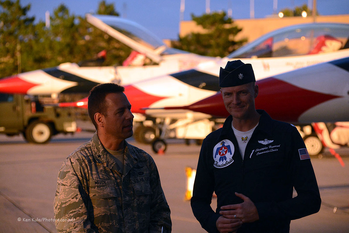 General Welch is the second in command of the USAFWC, the organization under which the Thunderbirds (officially known as the U.S. Air Force Air Demonstration Squadron) fall. Explaining that he and other senior officers deploy with units under their command from time to time, he’d experience the hardships and the efforts needed by Air Force personnel to succeed in their missions. This includes flying “back seat” in front line fighters, bombers and transports, as well as with the Thunderbirds, which he did during the weekend. The General would also provide support for another important event later that afternoon.