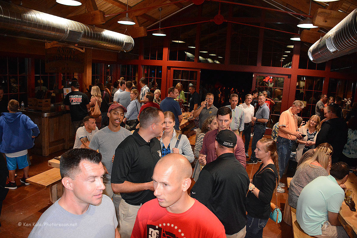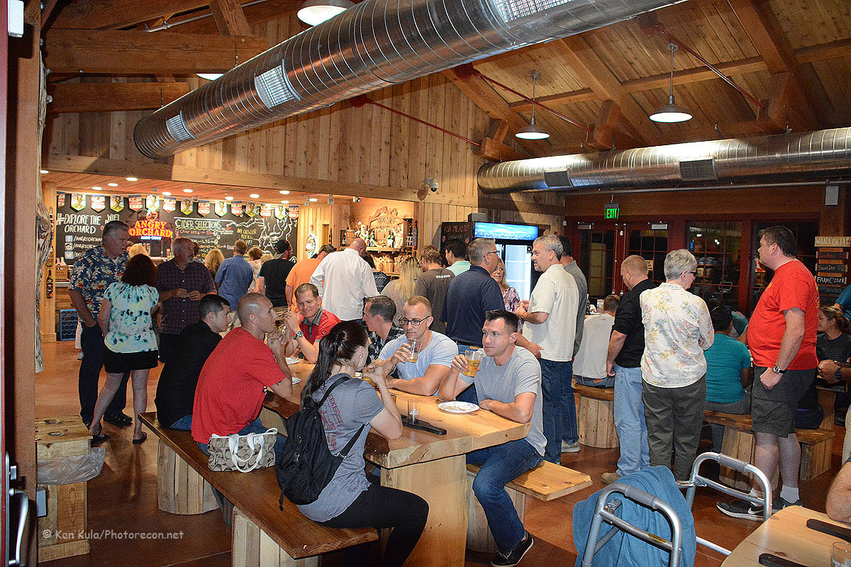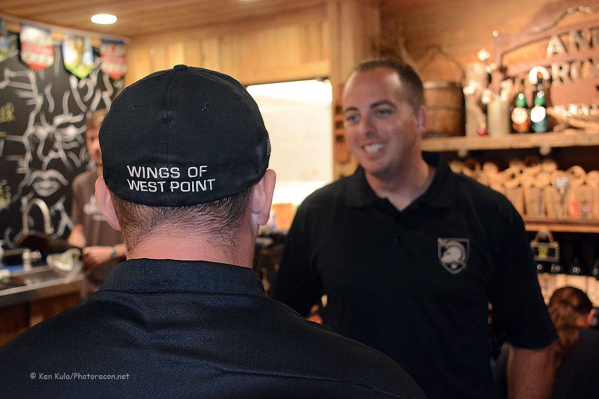 As we’ve already read, the New York Air Show offered a pair of public “meet and greet” events, on two evenings before the weekend air shows. Thursday evening, a “meet the performers” hour was paired with a reception for local sponsors at Billy Joe’s Ribworks, a restaurant on the Hudson River. Many civilian and military performers were on hand, and restaurant guests could strike up conversations with them from time to time. On Friday evening, the local Angry Orchard’s Innovation Cider House was the venue to another, more intimate party that was open to the public, for a small price. Samples of the locally-brewed hard cider and food were offered, and the sunset was beautiful. Again, many air show performers and team members were present and the relaxing atmosphere led to laughter and great conversation.