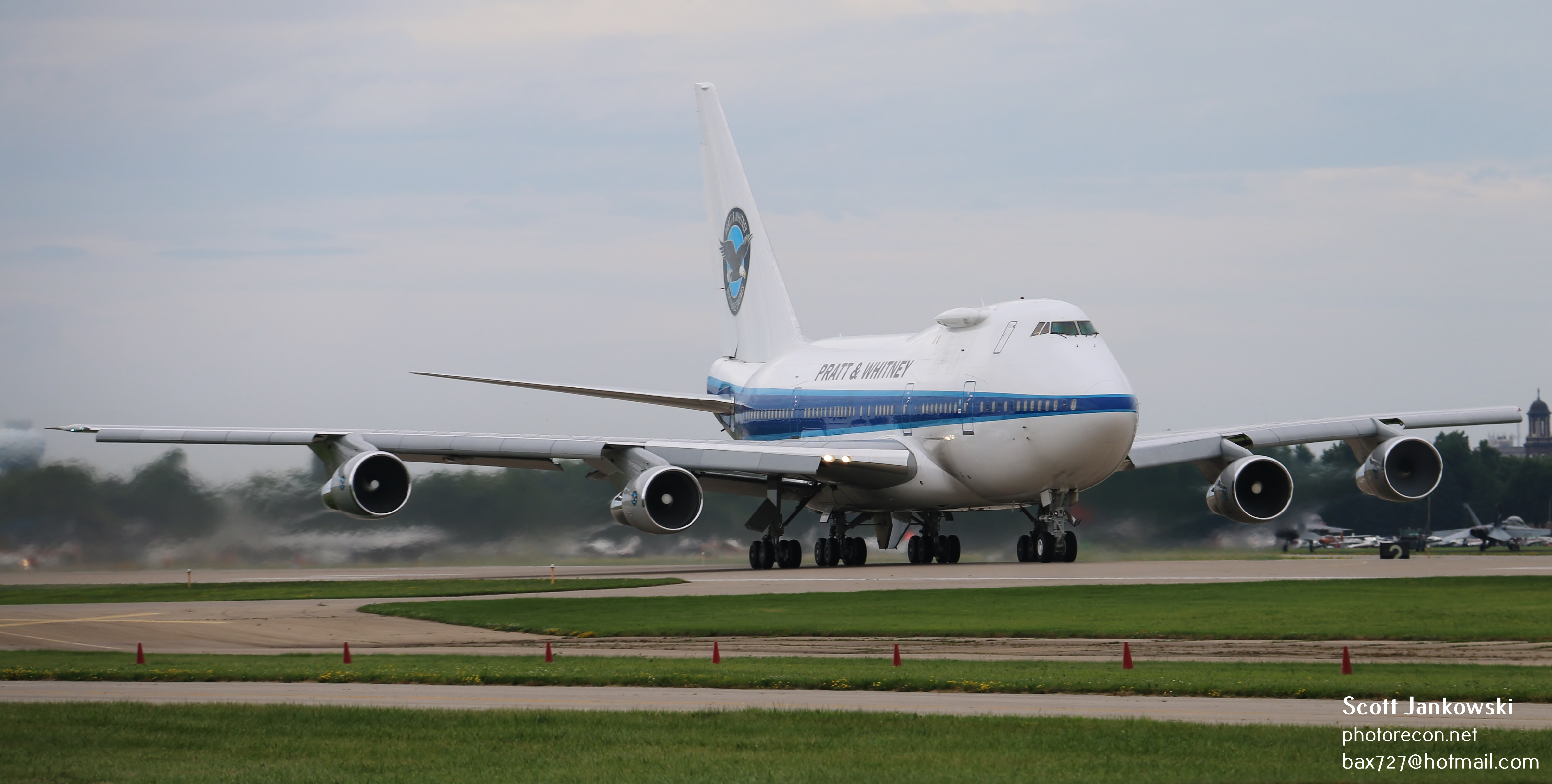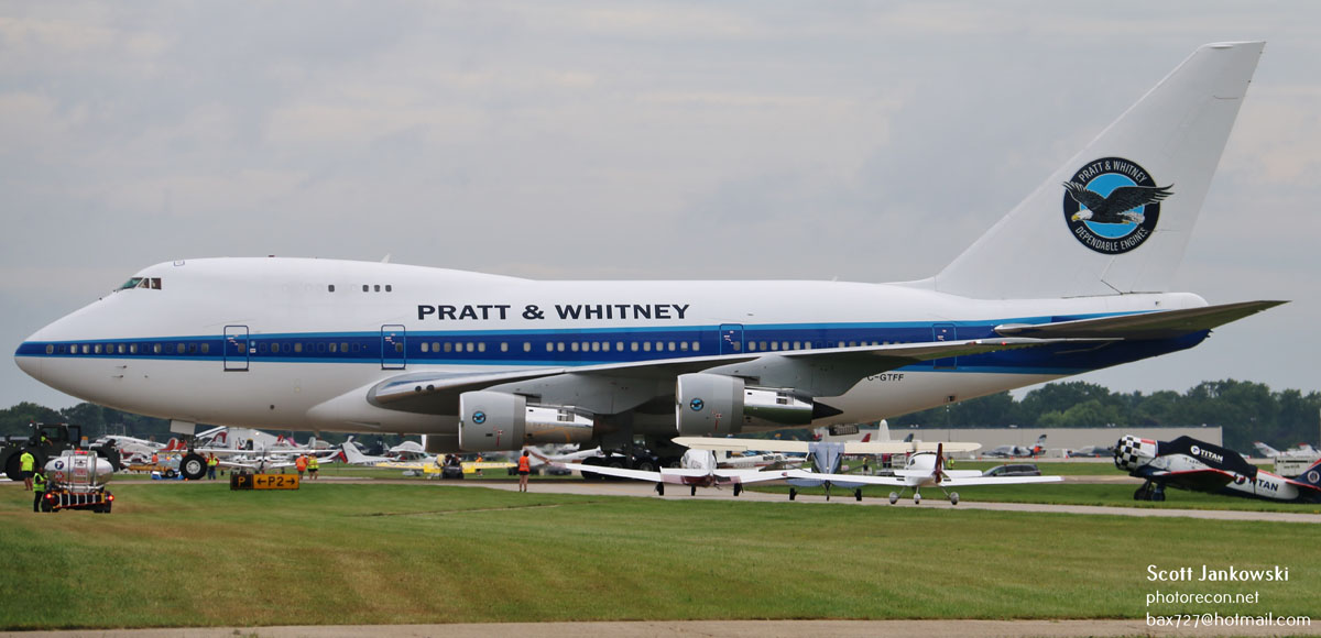 Welcome visitor and making its airshow debut in the United States was C-GTFF, a 1981 manufactured Boeing 747SP (Special Performance) operated by Pratt & Whitney of Canada. Boeing only manufactured 45 of the 747SP, this particular airframe, serial number 22484 was initially delivered to Korean Airlines in 1981, they would operate the aircraft until 1998. Pratt & Whitney would take possession of the aircraft in 2007; they modified the aircraft to become a flying test bed for their engines. This 747SP is powered by 4 of their JT9D-7 turbofan engines that generate up to 50,000#’s of thrust each, giving the aircraft a top speed of 624 miles per hour and a maximum range of 7,650 miles. The 747SP is a modified version of the Boeing 747 which is 47 feet shorter than the 747 and was designed for long range travel, it is also the highest-flying subsonic passenger airliner with a service ceiling of 45,100 feet. This flying test bed features a 5th engine mount on the right side of the fuselage to allow engine testing in real life weather conditions. Look for a feature article to come on this special aircraft.