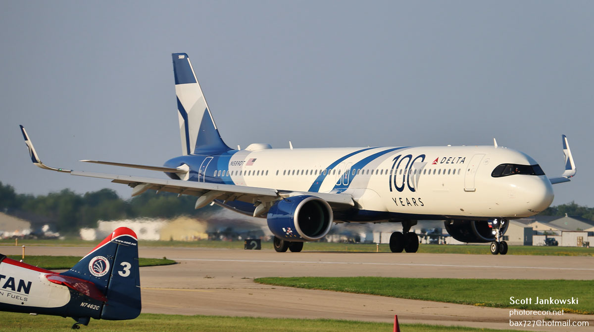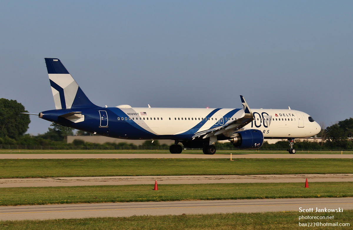 Delta Airlines is celebrating its 100th anniversary this year, in honor of that occasion they brought N589DT, a 2025 Airbus 321-271NX, wearing a special 100 years color scheme. This Airbus was manufactured in Hamburg Germany as MSN12417 and arrived and departed to their Atlanta hub/headquarters on 7/22. Delta’s A321neo’s are powered by a pair of Pratt & Whitney PW11336A-JM engines giving the 194 passenger 321neo a cruising speed of 525 miles per hours and a range of 3,370 miles. Delta currently flies 76 of this model of Airbus 321. Delta uses this type of aircraft on routes like New York JFK to Seattle, Los Angeles California to Orlando Florida and Salt Lake City Utah to Las Vegas Neveda.