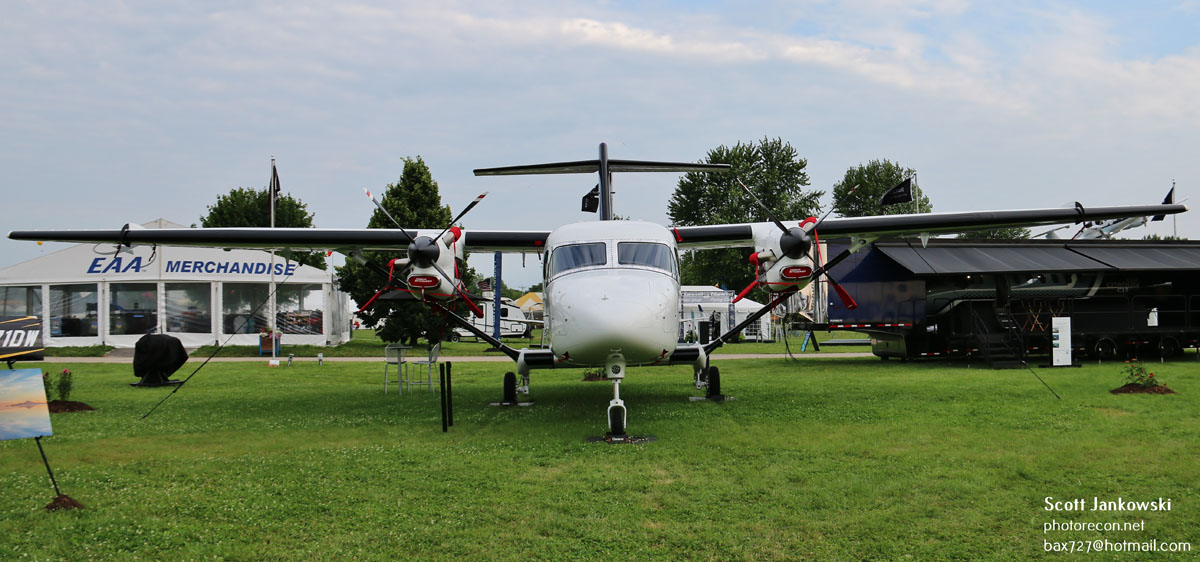 The other Cessna product on display was N780FX, a newly manufactured Cessna 408 Sky Courier. This aircraft, MSN 408-0044 is operated by Mountain Air Cargo and is powered by a pair of Pratt&Whitney PT6A-65SC turboprop engines giving the 408 a top speed of 240 miles per hour and a maximum range of 1,036 miles. Unlike the smaller 208 which carries bulk loaded cargo, the 408 is designed to carry 3 LD-3 containers with a 6,000# payload. FedEx currently has 28 of the 408’s in service with another 50 on order, they are the launch customer for the type. Mountain Air Cargo uses the 408 on routes from Memphis Tennessee to Dothan Alabama and Orlando Florida to Tallahassee Florida.