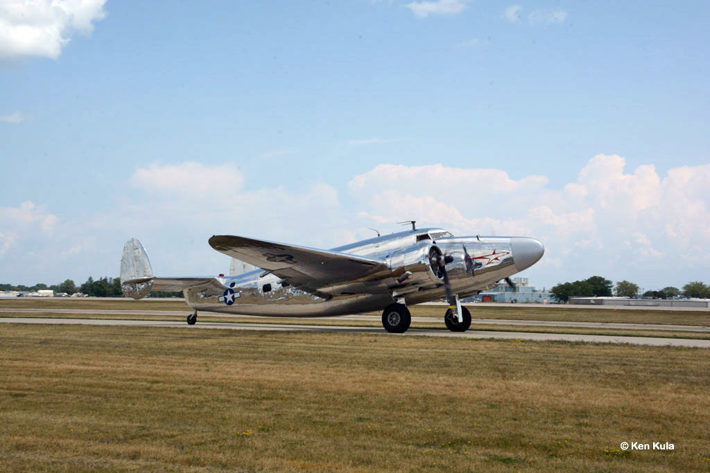 A shiny Lockheed Lodestar arrived, brilliantly reflecting the sun as it passed us.