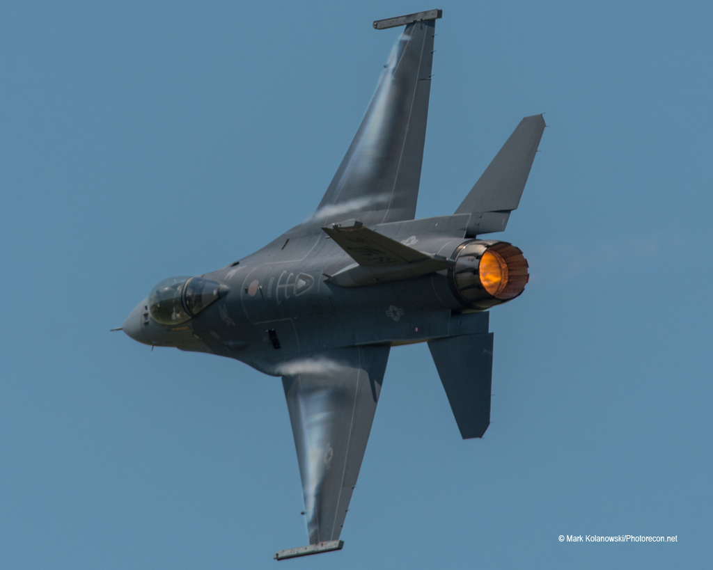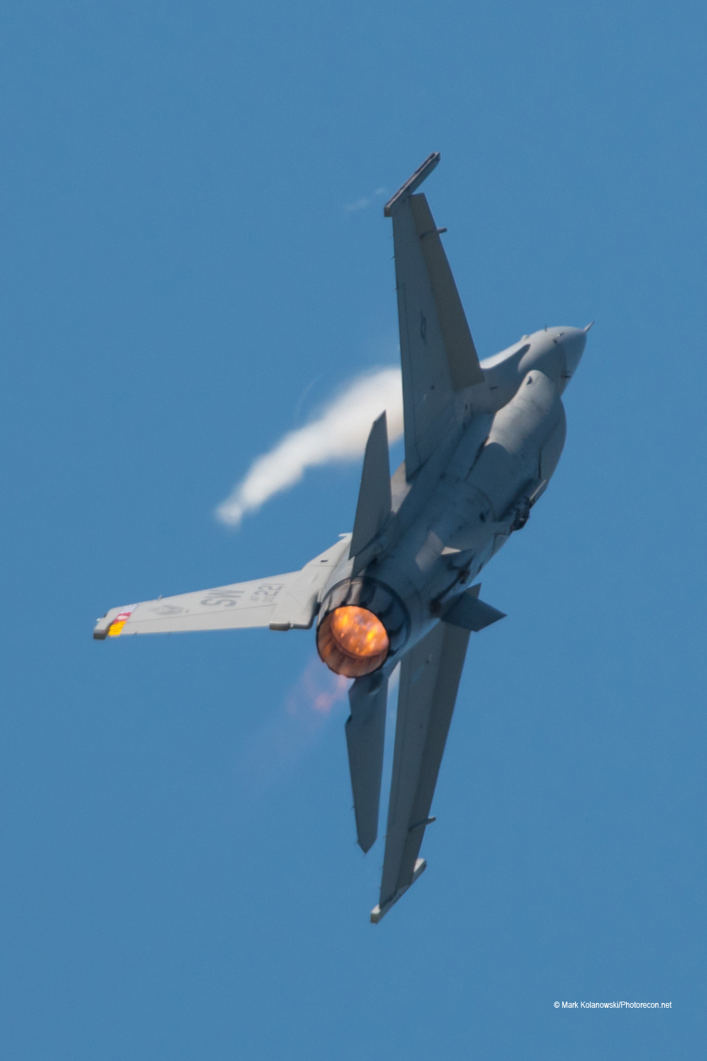 As the team would say, a rage-fest soon began as Toro began the demo with the aggressive bank and pull on takeoff. The next 12 minutes were full of noise, vapor, G’s and afterburner, along with the commentary of team superintendent MSgt Chris Schneider, talking us through each of the maneuvers performed by Maj Schmitz in the F-16. Schneider was assisted at show center by team NCOIC (Non-Comissioned Officer In Charge) TSgt Ryan Hutchinson, and TSgt Drew Wilson.