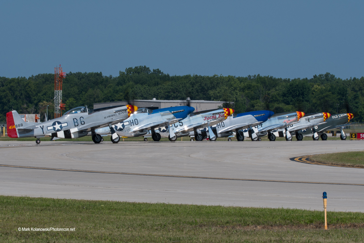 Not content to allow the ground troops to have all the fun, 7 P-51s (Old Crow, Gentleman Jim, Petie 2nd, Swamp Fox, Moonbeam McSwine, and Glamorous Glen III) started up and taxied out to join Quicksilver in the skies over Ypsilanti. Photographers in the photo pit were treated to the symphony of a synchronized preflight runup of 7 Rolls-Royce/Packard Merlin V-12s just a few hundred feet away as the aircraft prepared for flight. Led into the air by Old Crow, with Quicksilver bringing up the rear of an initial pass from in front of the crowd, the Mustangs began a racetrack pattern, passing from showright to left in front of the crowd and circling back around behind the show line. With 8 of the legendary warbirds in the air, this resulted in a 10 minute period where a P-51 was performing a pass in front of the crowd every 10 seconds or so. To have so many opportunities to get photos of Mustangs in action was an amazing experience, though the suggestion to have physical therapists on hand to assist with sore shoulders in future years was floated to the show organizers come lunch time. Despite the struggle of holding big glass up for an extended time with effectively no breaks, it was absolutely well worth it given that the best light of the show belonged to the legendary North American P-51 Mustangs and their (Detroit Built) Packard Merlin engines! While the German forces had the upper hand at the end of Act 1’s battle, the afternoon’s engagement was still to come and would decide the winner of the battle for show center at Willow Run!