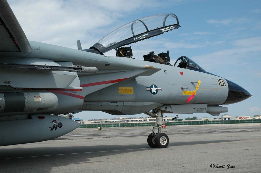 Cdr. Jim “Puck” Howe was the last acting Commanding Officer of an active F-14 squadron (VF-31), signs his jet in Long Island back in 2006 before it was put on static display at the Cradle of Aviation Museum in Garden City NY.