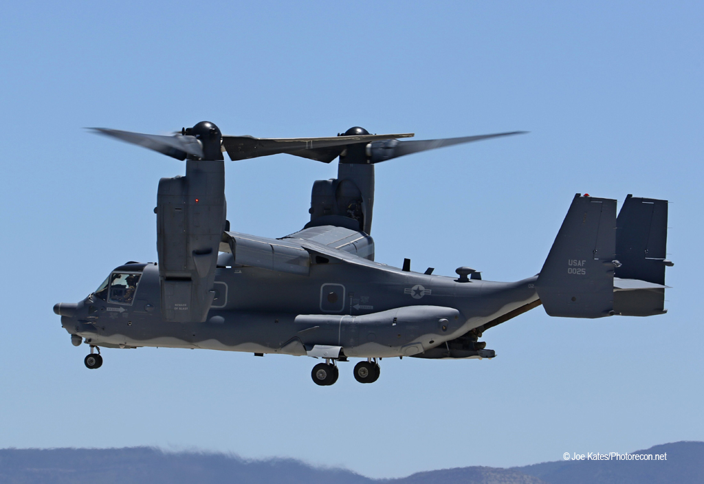 Several CV-22 Osprey (Ospreys?), along with UH-1N, HH-60G, HC-130J, MC-130J, MC-130H aircraft from the 58th SOW took to the sky in an awesome display of the combat and rescue capabilities of the dedicated men and women serving in the 58th SOW. The base’s ground and sky above was literally turned into a combat zone. Complete with enemy fire in the distance, fast roping rescue crews braved that fire to rescue a downed crew member.