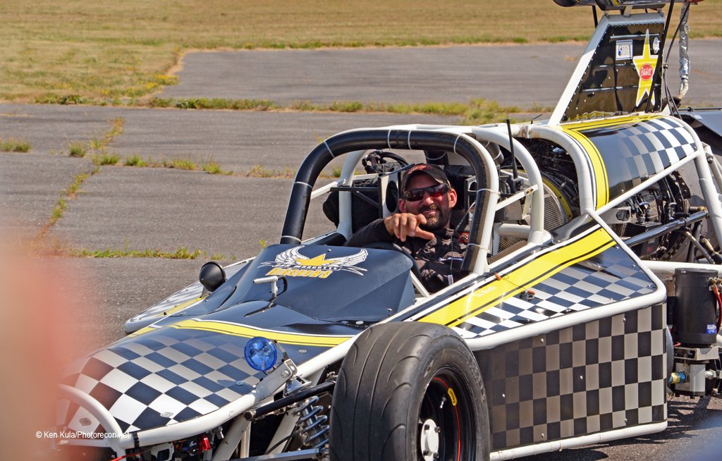 Then it was Dan Marcotte’s turn to dazzle the crowd, in two different ways. His web site states that he offers “inspiring, surface level aerobatics… and jet car madness” too! First, he flew his acrobatic routine in his Ultimate 10-200 biplane. With very little straight and level flying, Dan is no stranger to the Knox County Regional Airport, having entertained the Wings and Wheels crowds for several past Wings and Wheels shows. In 2003, Dan got his pilot’s license and with just 80 hours to his credit, travelled to Reno Nevada, completed his Pylon Racing School training, and placed 4th in the Bronze race in his aircraft category on his first competition.