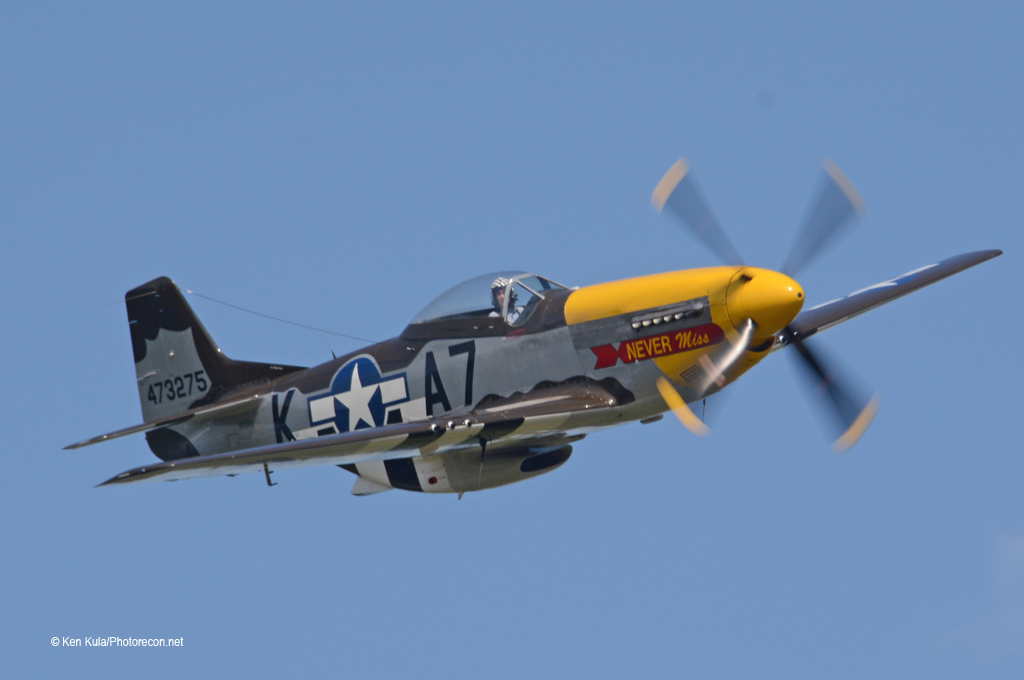 Later, a North American T-6 Texan, the P-51 Mustang “Never Miss” and the TBM “She’s the Boss” made a series of passes, seemingly lower each time. Watching the World War II aircraft dive in from a high altitude gave one a near head-on profile for a few seconds, and the aerodynamic design differences between an in-line engine versus a radial engine was readily apparent.