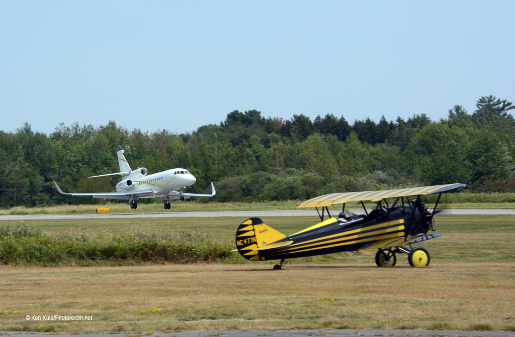 A steady stream of local airline Cessna Stationaires and 402s, plus privately owned pleasure and business craft came and went for most of the day, but for about three hours after noontime, a series of performances offered aerobatics and flybys of some vintage and rare aircraft. Intersecting runways allowed for most of the day’s flight operations to occur directly in front of the spectators, save for a few corporate jets which need the longer, more distant runway.