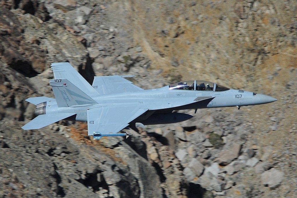 Surprisingly you can see a lot of CAG Birds in the Canyon coming from NAS Lemoore or China Lake. There are also aviators from Edwards, the QRA from the March AFB and the California Air National Guard. If there are foreign detachments on one of these bases, you can also get them flying through the canyon. Typhoons and Tornadoes of the British Royal Air Force and brand-new Australian Growlers were seen here, all on detachment to China Lake.