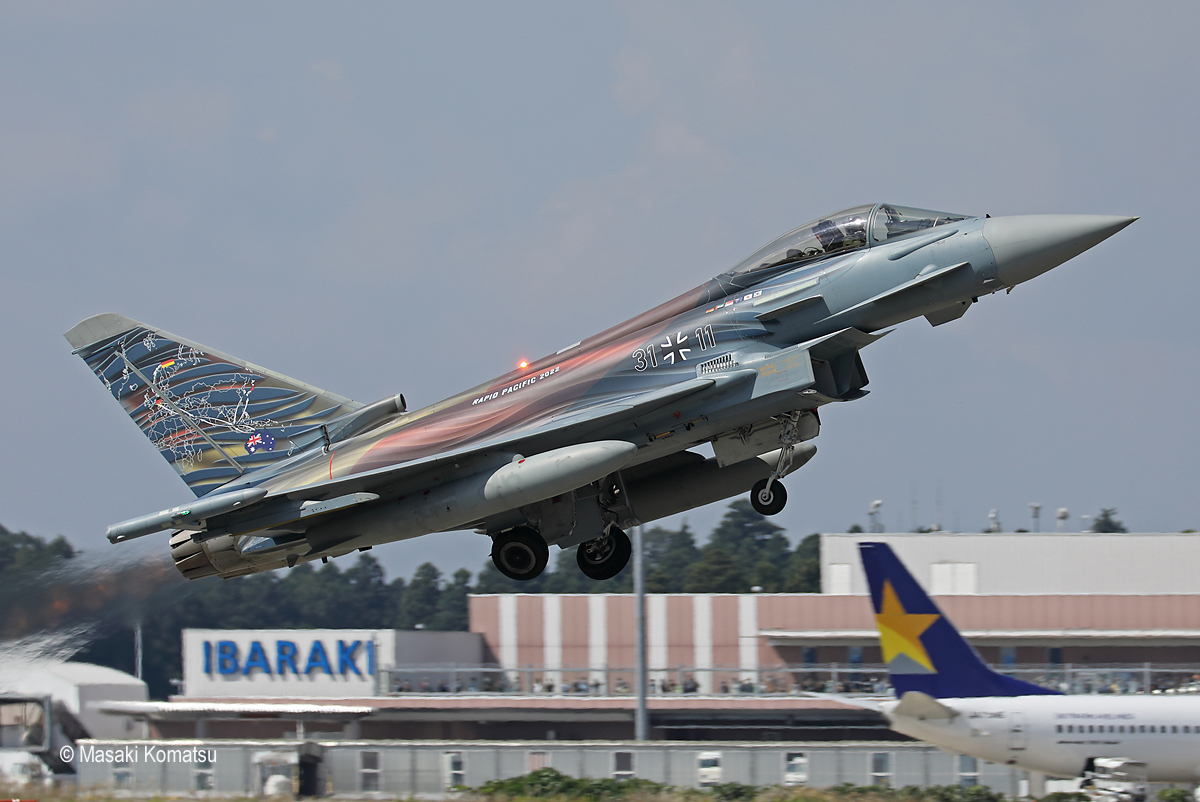 Masaki Komatsu caught part of the record-setting Rapid Pacific 2022 deployment of German Air Force fighters, tankers and transports as they left the Hyakuri Air Base in Japan, bound for Singapore. The entire group of aircraft included six Eurofighters, three A330 Multi-Role Tanker/Transports and four Airbus A-400Ms. The long-distance flight was the first time a deployment of German fighters traveled to the “Indo-Pacific” region. The first elements left Germany on August 15, 2022, and the German group planned on arriving back home by early October, 2022.
