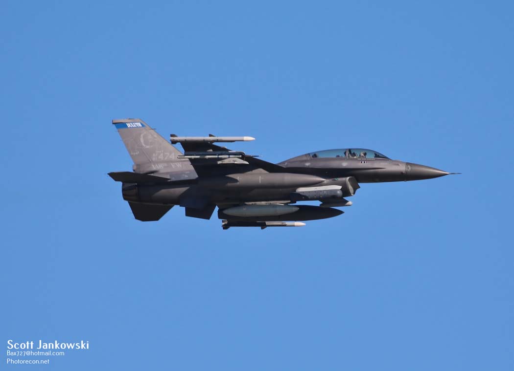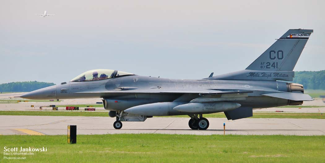 From the Colorado Air National Guard, we have a trio of Lockheed Martin F-16C Fighting Falcons from the 120th Fighter Squadron based at Buckley Space Force Base Colorado. Seen departing Milwaukee after the 2025 Open House at the 128th Air Refueling Wing is a Duluth Minnesota based Lockheed Martin F-16DJ which serves with the 148th Fighter Wing and is part of the Minnesota Air National Guard.