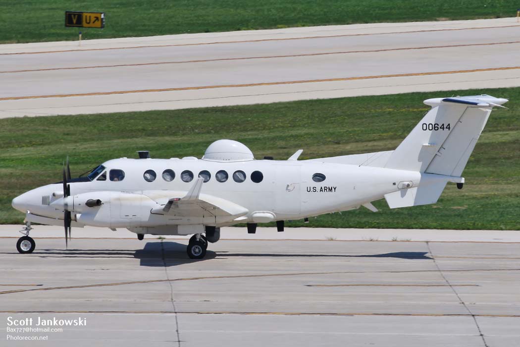 Reconnaissance and Surveillance aircraft that have visited including the following from the United States Army a Beechcraft MC-12S Huron wearing an all-white color scheme.