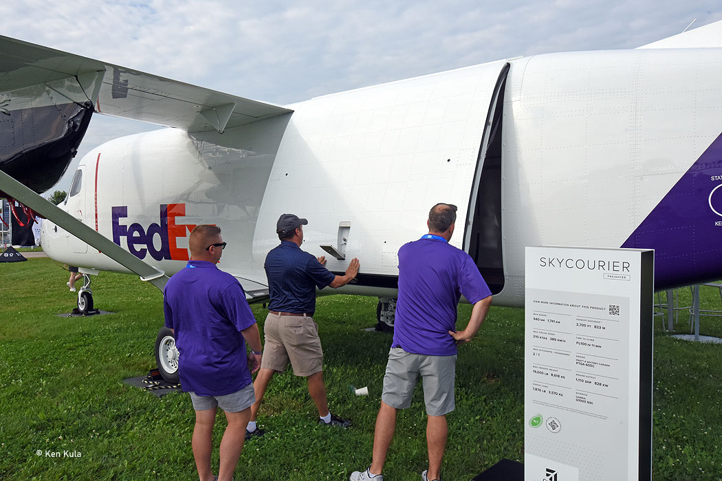 The Cessna SkyCourier is offered in a trio of versions: this freighter, a 19-passenger regional airliner, or a combination version with 9 passenger seats and room for freight container(s). FedEx has taken delivery of at least twenty of the freighter versions of the aircraft as of October 2025.