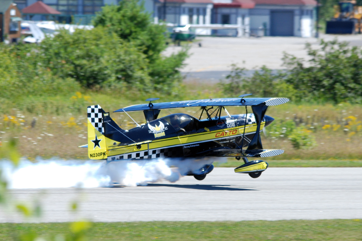 The “Rally”, as it is also known, kicked off its official flying program just after noon… well, sort of. After the playing of our National Anthem, the museum’s working 1917 Gnome rotary engine got swung into life. After some effort (volunteers noted that this engine can be temperamental at start), the motor suddenly crackled loudly into life, accompanied with the usual spray of castor oil. A trio of civilian aerobatic performers then took to the skies… Dan Marcotte in his Ultimate 10-200 biplane, and Jim Parker Airshows, which added aerobatics in a red and white Pitts S-2B and a Salto sailplane. There were radio controlled aircraft too, wheeling around in the bright blue sky, including a jet that could reach 250 miles per hour.