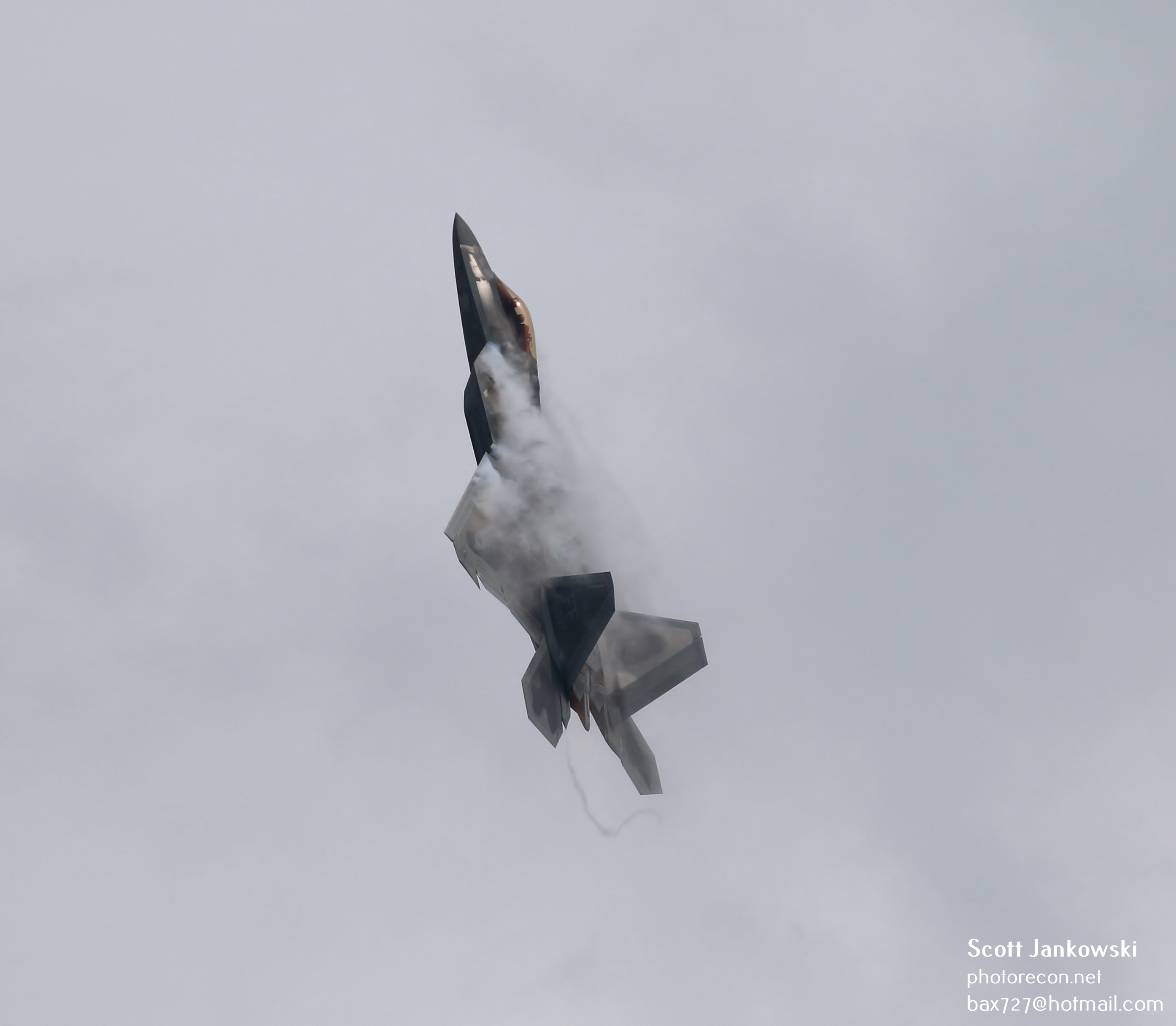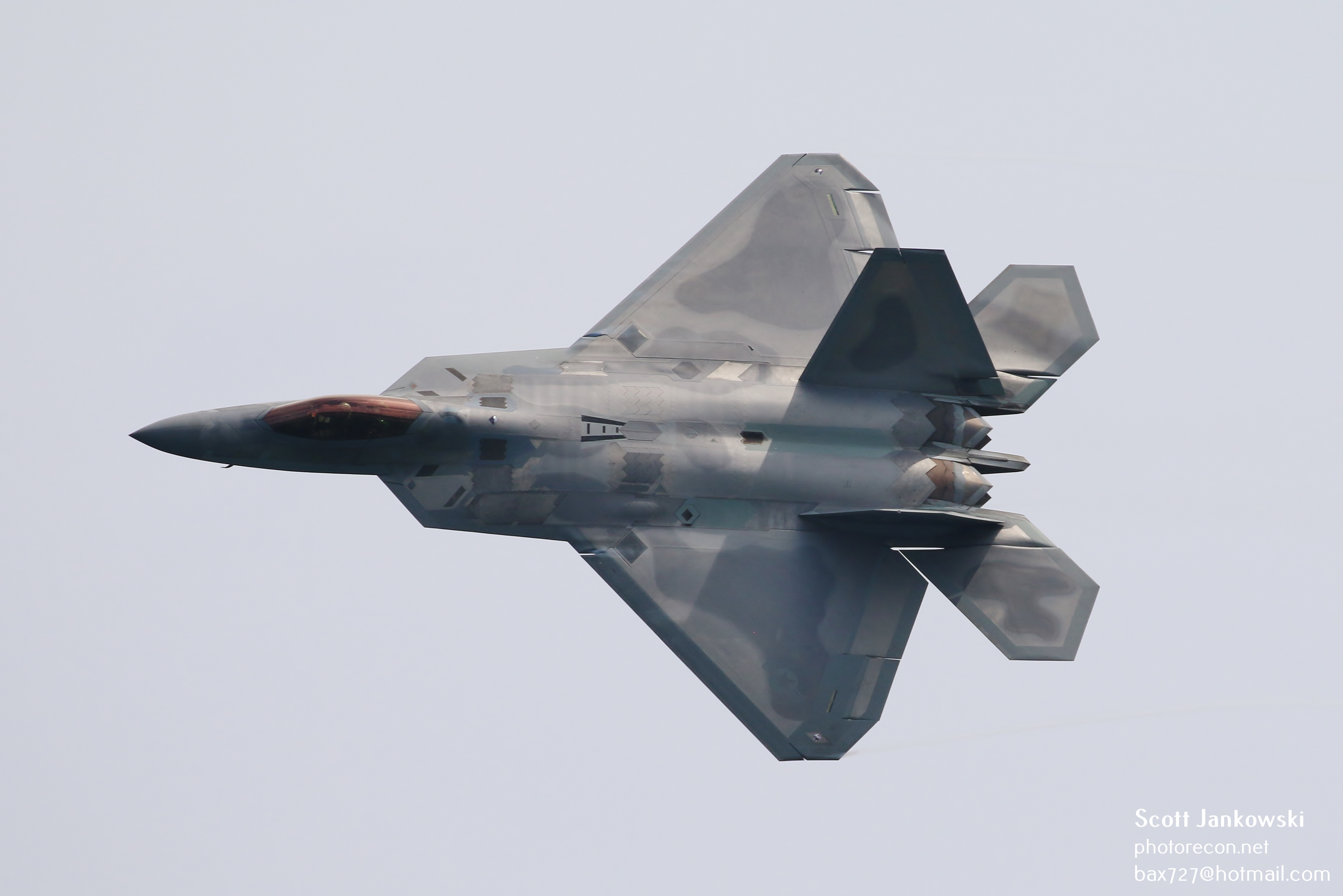 Flying alongside the F-22A, in the always popular Heritage Flight was a 1944 vintage North American P-51D Mustang, Happy Jack’s Go Buggy, flown by Bruce “Doc” Winter. This beautifully restored P-51D wears the colors of World War II Ace Major Jack Illfrey who shot down 7 ½ enemy aircraft and evaded capture twice. The P-51D was the premier fighter of World War II and is one of the most popular Warbirds still flying.