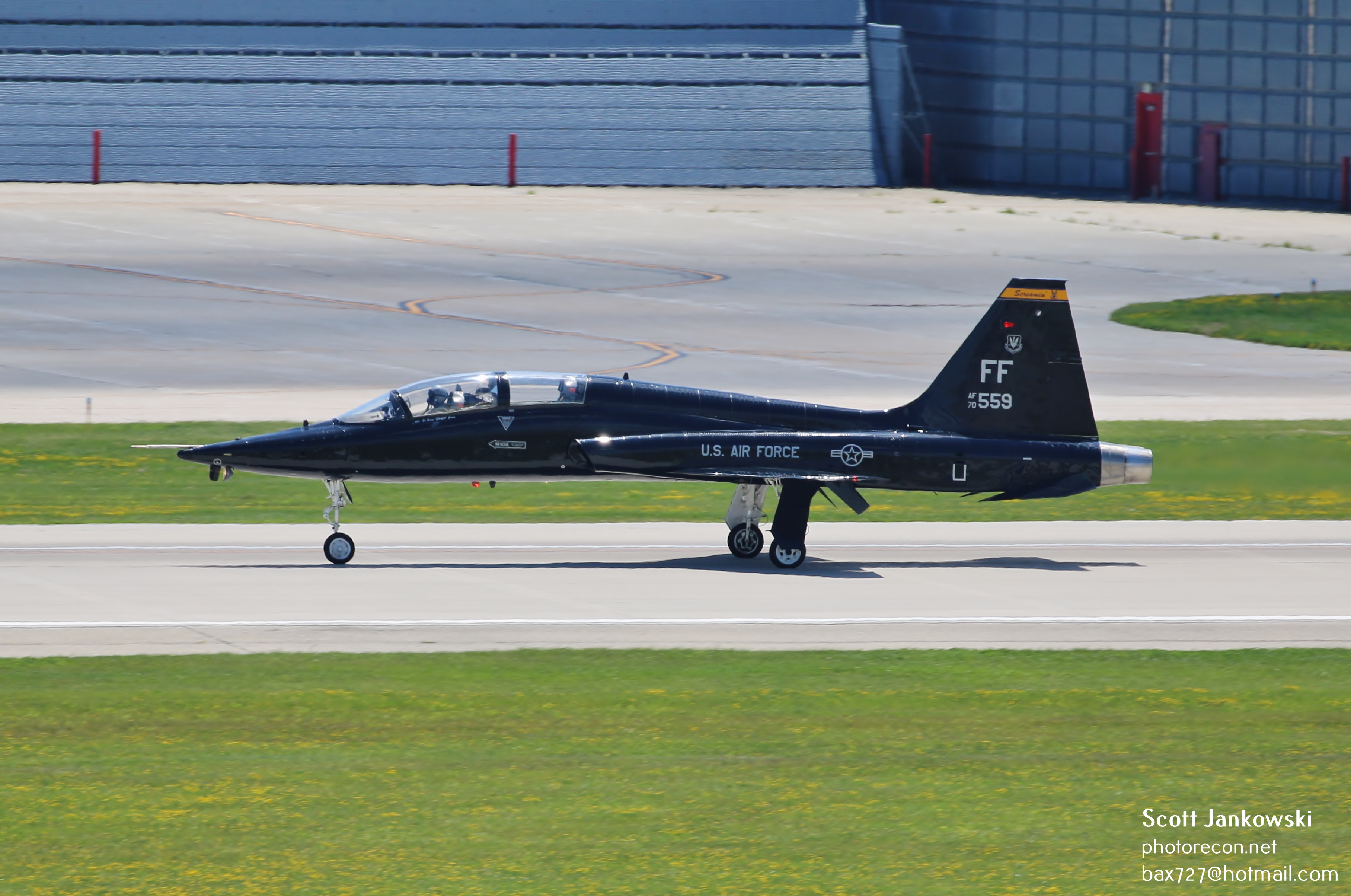 2 pairs of gloss black Northrop T-38C Talon’s participated in this year’s show. The first pair are assigned to the 71st Fighter Training Squadron based at Joint Base Langley-Eustis Virginia. These T-38’s are used to conduct adversary air training for the F-22 squadrons also based at Langley. The second pair are flown by the 9th Reconnaissance Wing and are based at Beale Air Force Base California. These T-38’s are used as pilot proficiency trainers for the pilots assigned to the Lockheed U-2. The Talon first flew in 1959 and has been in service for over 60 years and is due to be replaced by the Boeing T-7 Red Hawk.