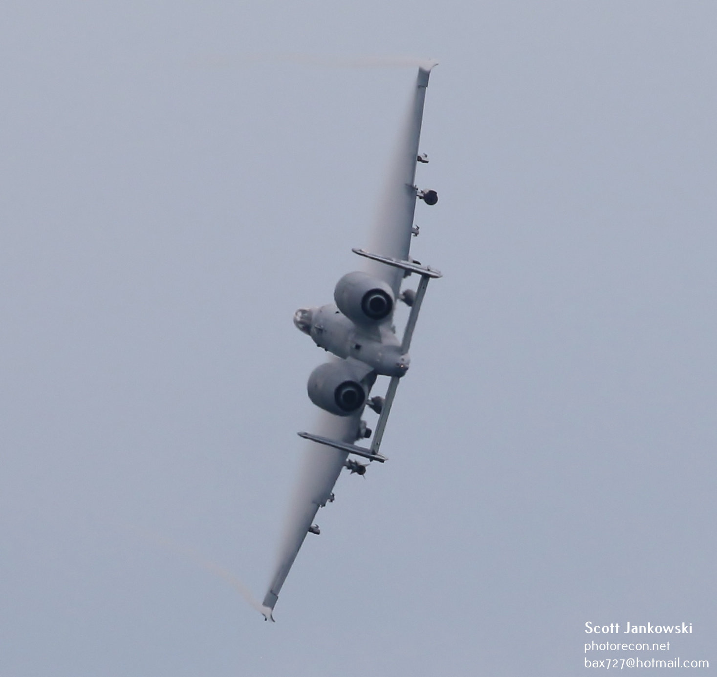The 104th Fighter Squadron, nicknamed the “Fightin’ O’s” flew the Republic Fairchild A-10C Thunderbolt II in the airshow. The 104th is based at Warfield Air National Guard Base, Middle River Maryland and has operated the A-10 since 1979. A total of 4 A-10’s were present and flew a demo routine highlighting the combat capabilities of the A-10,if they would be called upon to help friendly troops under enemy fire. The 104th flew several passes simulating the use of its 7-barrel GAU-8 Avenger cannon which can shoot 3,900 rounds a minute and also simulated drops of 500# bombs. The 104th can trace its heritage back to the 104th Observation Squadron of the U.S. Army National Guard back in 1921 and is the oldest unit of the Maryland Air National Guard. This will be one of the final appearances of the 104th and the A-10 as they will be retired by the end of 2025.