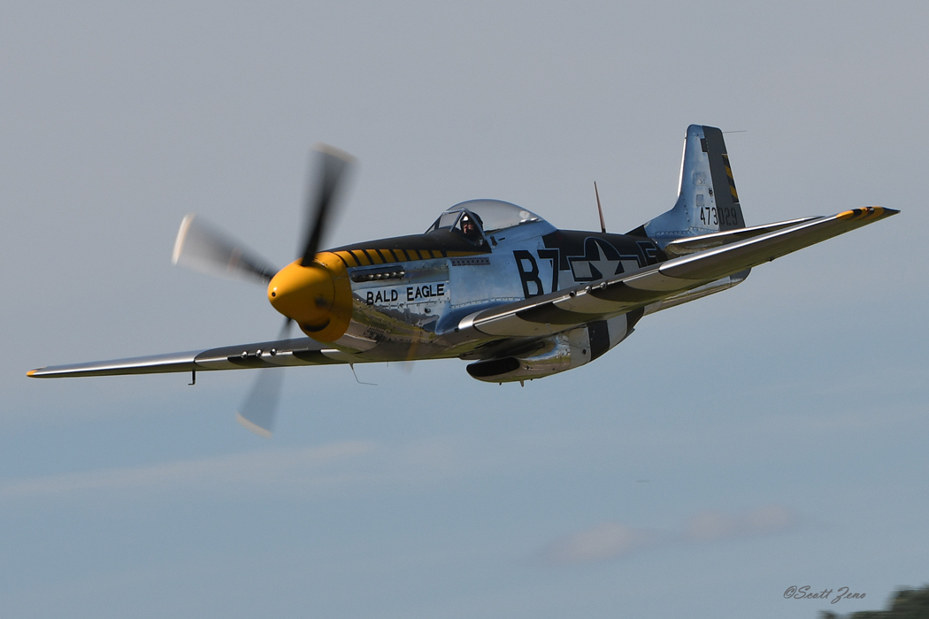 An Air Force Heritage Flight with the F-22 Raptor and “Bald Eagle, a P-51, performed their moving tribute to veterans. The Mustang then performed a flying routine.