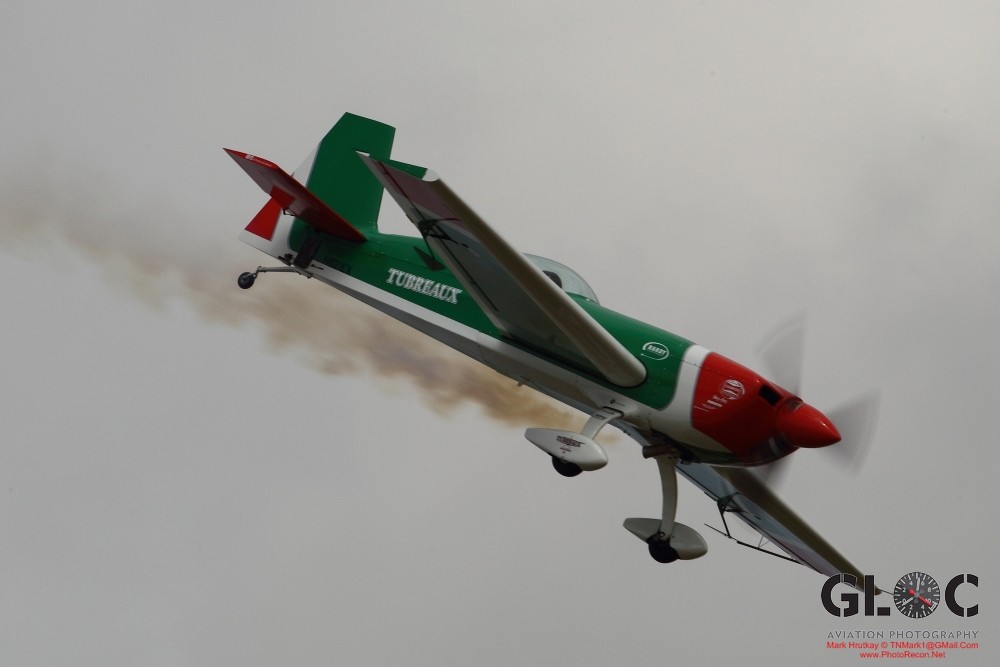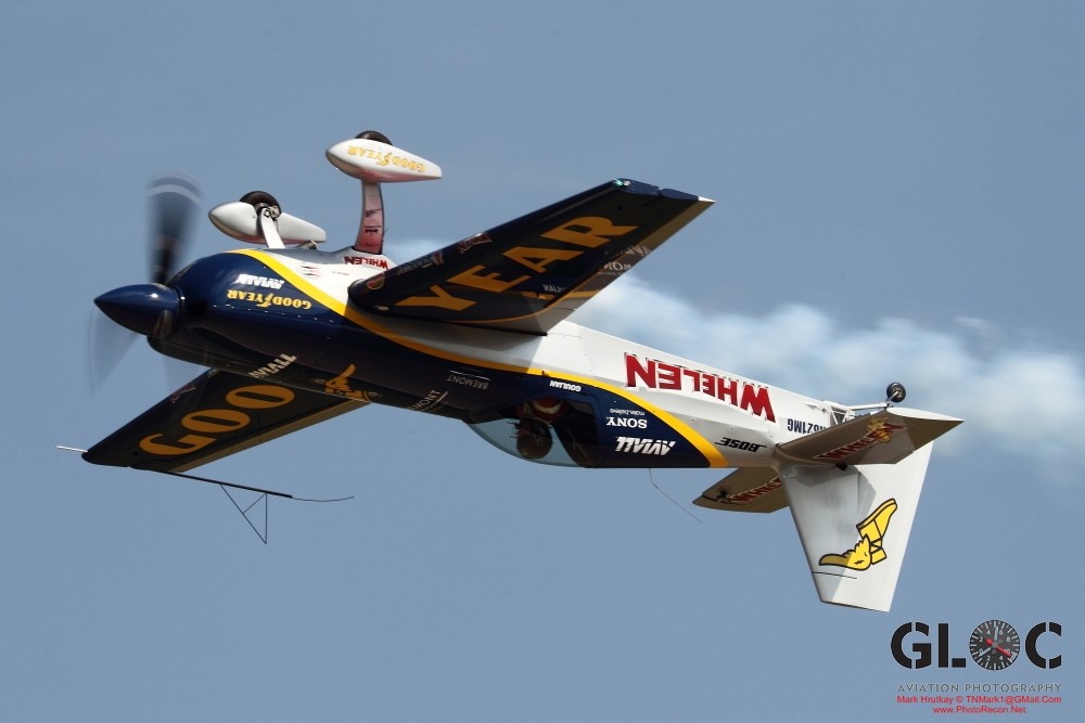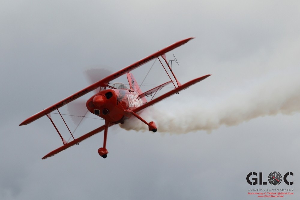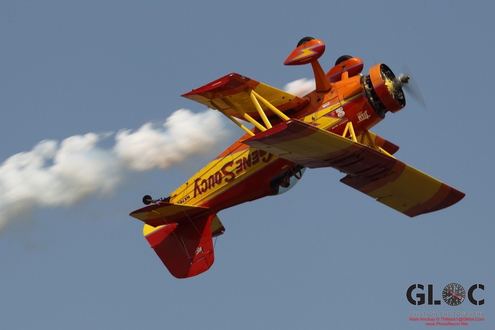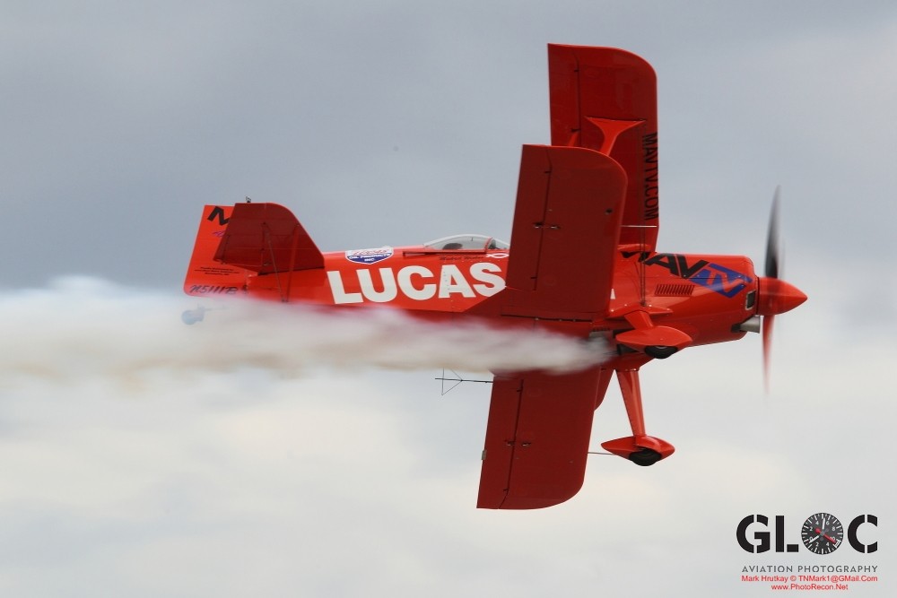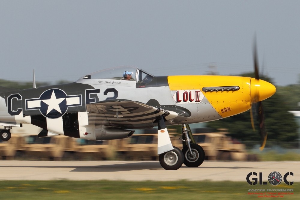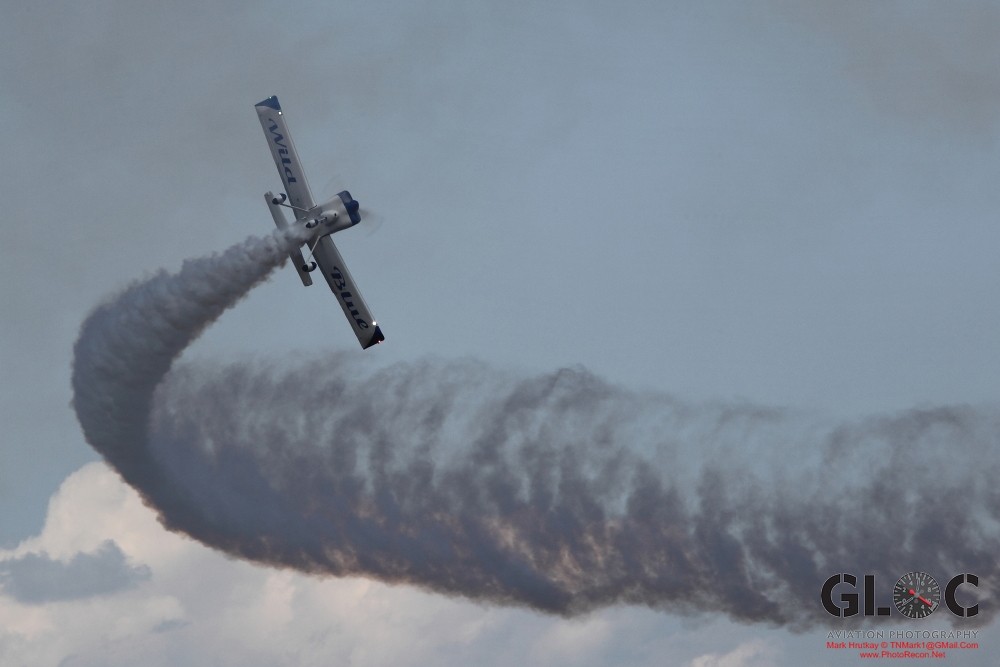 To get the daily show off to a good start you need something that steals the crowd’s attention. The P-51 they picked to open the show was perfect. Quick Silver is a very special Mustang, it’s the lightest sport P-51D in the world (racers excluded) which means it’s fast and responsive, and perfect for aerobatics. Scott Yoak, did several passes over the runway, while the announcer explained the history of the EAA and Paul Poberezny. Quick Silver shot up and down the runway very low, with the power set at 40″ and 2700 RPMs, which is about the highest setting you can pull on 100LL fuel and expect the engine to last very long. Quick Silver was moving at 375 MPH, a speed that a “normal” weight P-51 could never keep up with. The passes straight and smooth and Quick Silver looked like a laser beam shooting down the runway, the sound from the Packard Merlin caught everyone’s attention. Looking around at the crowd, there were few people who were not completely captivated. The audience approved, Quick Silver was a hit and the show got off to a great start.