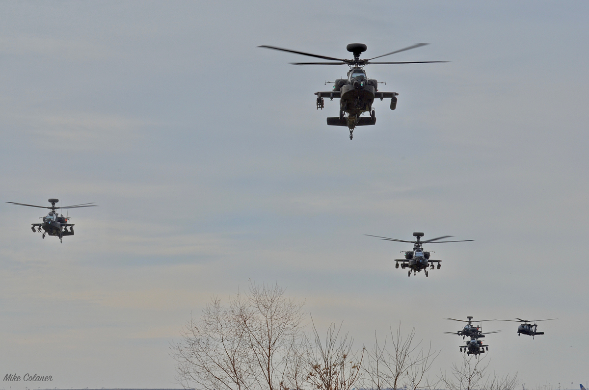The Army’s 10th Combat Aviation Brigade had a different idea. They manned their AH-64 Apaches and started their engines. The Army decided to conducted a hover test at 500 feet to see if they could be seen from the ground. They decided to standby in the six aircraft in case a window in the weather opened up for a chance at the flyby, but it did not.
