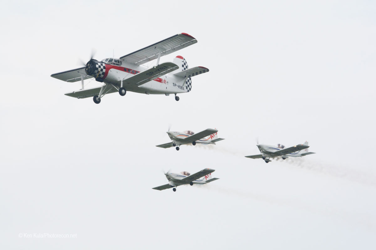Ten hours of non-stop flying activity was planned for each day, stretching from 9:00AM through 7:00PM. Unfortunately, weather conditions rained on this parade and some scheduled flying was curtailed, but the majority of the planned pageantry alighted. Here are some of the highlights of the event in Poland, plus a bit of history and current affairs of the Polish Air Force… I was able to observe the practice shows on Friday (in fine weather) and during Saturday’s rain shower-effected display.