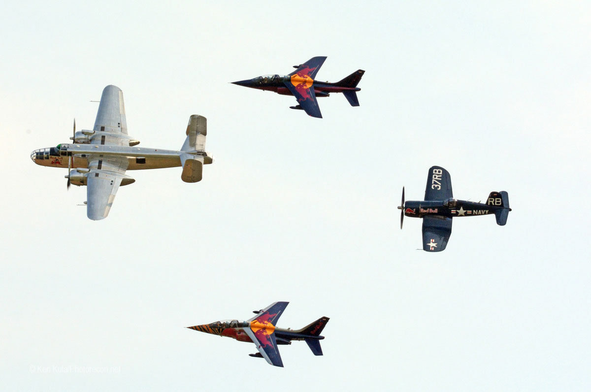 Civil teams included Jordan’s Royal Jordanian Falcons (Extra 330 aerobatic planes), the Latvian Baltic Bees civil jet team (L-39 Albatross trainers), the Cellfast Flying Team with a trio of SOCATA Rallye prop planes, plus a trio of locally designed AT-3 sport planes led by an Antonov AN-2 biplane. The Flying Bulls – the Red Bull warbird formation – contained an F-4U-4 Corsair, a pair of Dornier/ Alphajets and a North American B-25 polished bright silver, along with a solo T-28 trainer. A five-ship formation made up of a pair of civilian-operated World War II-era North American Harvards and three Polish Air Force PZL-130s also presented a formation routine.