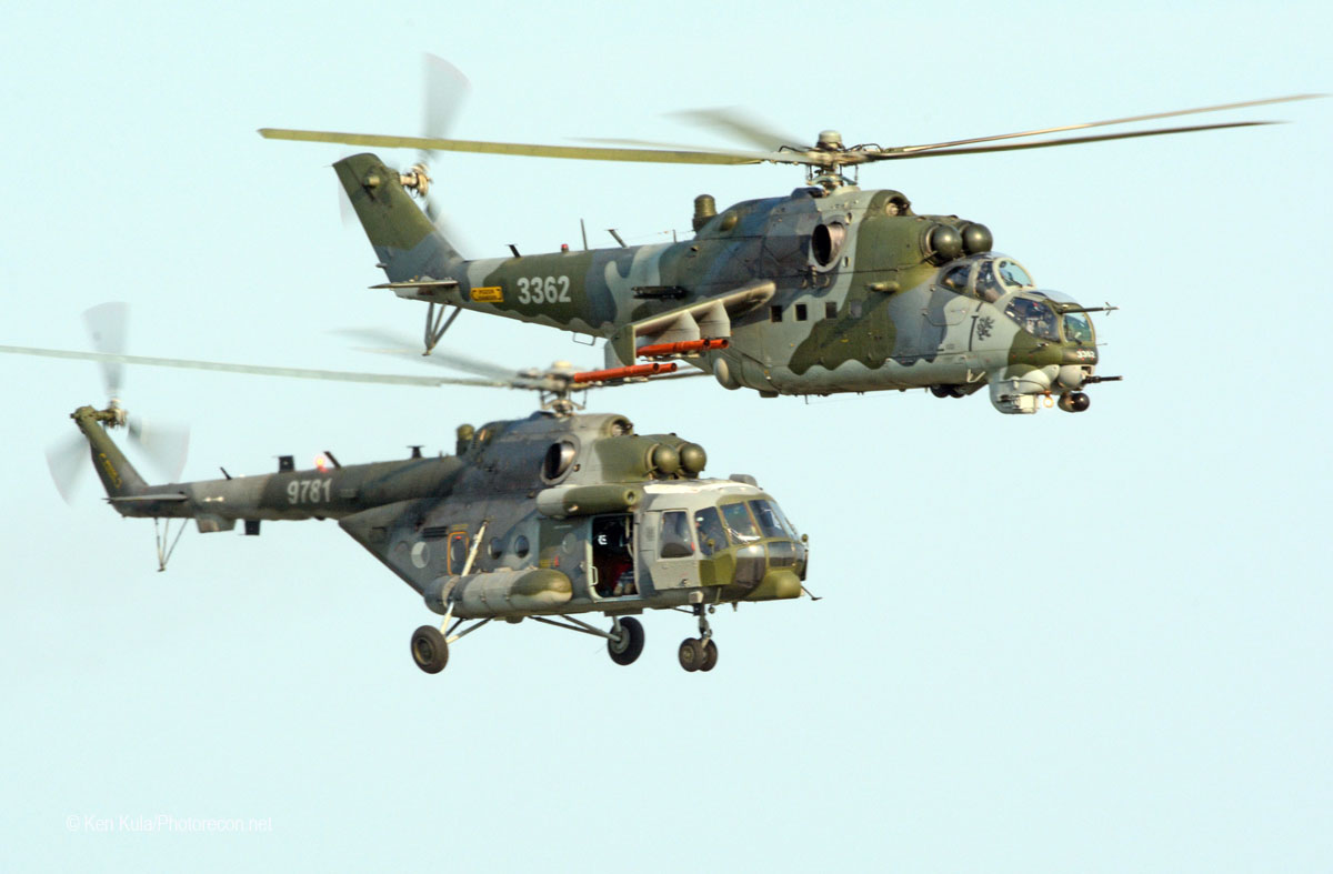 Military and civilian aerobatic teams flocked to the venue… military flight demo teams included the Switzerland’s Patrouille Suisse (F-5 fighters), Italy’s Frecci Tricolori (MB-339 trainers), Finland’s Midnight Hawks (Hawk trainers), Spain’s Patrulla Aguilla (CASA 101 jet trainers), Croatia’s Wings of Storm (PC-9 trainers), plus Poland’s Orlik Aerobatic Team (PZL-130 Orlik turboprop trainers) and Team Iskry (TS-11 jet trainers). A pair of Czech Air Force helicopters – a Mi-35 and a Mi-171 joined to present an interesting Combat Search and Rescue demonstration (the Mi-35 would do double duty with an aerobatic display all of its own too).