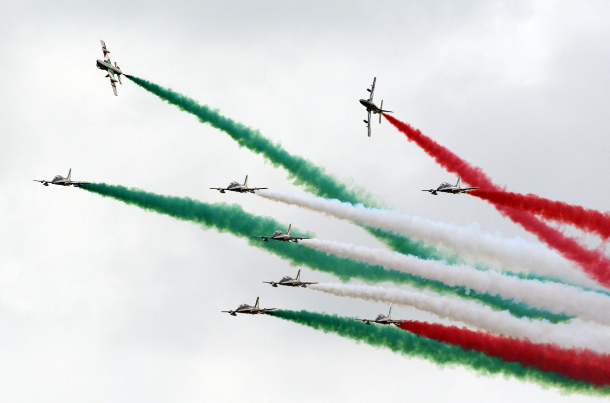 There were many military aircraft with special color schemes on their airframes, ranging from the Royal Air Force’s own 100th Anniversary scheme on their Typhoon fighter, to the aforementioned German Eurofighter in “Ghost Tiger” colors. The Czech Air Force’s Gripen had their own colorful 100th anniversary scheme on their tail too, and the Italian Frecce Tricolori jets displayed small decals of the three aircraft types the team has flown since their formation in 1961.