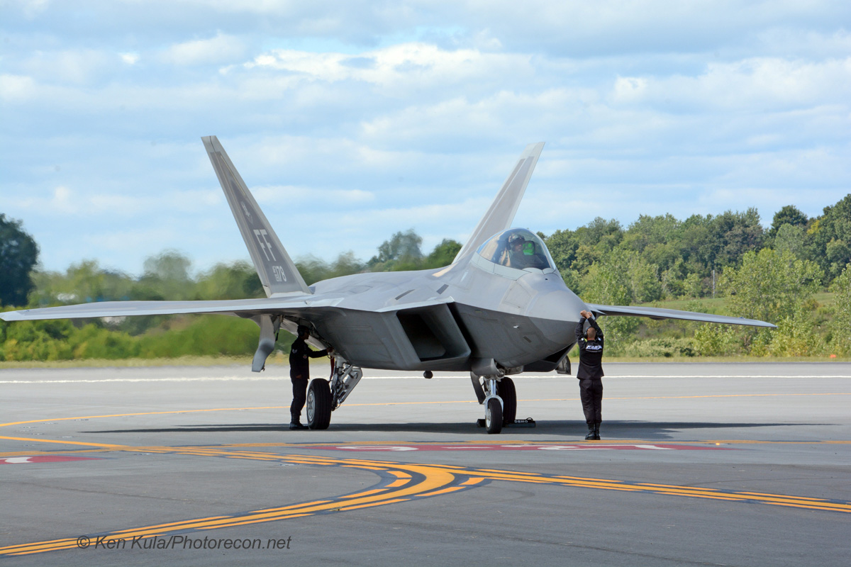 Last minute changes forced show promoter Brian Lilly Co. to find a new venue for the 2015 New York Air Show. Originally scheduled for Coney Island Brooklyn NY, the promoters had just seventy-one days to manage all of the necessary logistical details of putting on a first class show. Kudos to the Brian Lilly Co, the airport staff and all of the volunteers for pulling it off and making it all work in such a short period of time! Days prior to the show and in commemoration of the 70th Anniversary to the end of World War II, an F-16, F-22, B-25 and P-51 flew in formation for a photo-shoot up New York harbor past the Statute of Liberty. It was a fitting tribute and attention grabbing advertisement for the air show. The Newburgh show opened with remarks by Stewart Air Force Base resident 105thWing Vice Commander who thanked the large crowd for their support while paying tribute to fallen air show performer Andrew Wright. He informed the audience that the show participants were dedicating their weekend performances to Andrew and his family. Additional remarks continued by the airport’s Executive Director, Mr. Ed Harris, who acknowledged and thanked former veterans and current military personnel in attendance. All was followed by an Air Force ceremony that enlisted local youths, which brought an arousing warm send-off from the New York crowd.