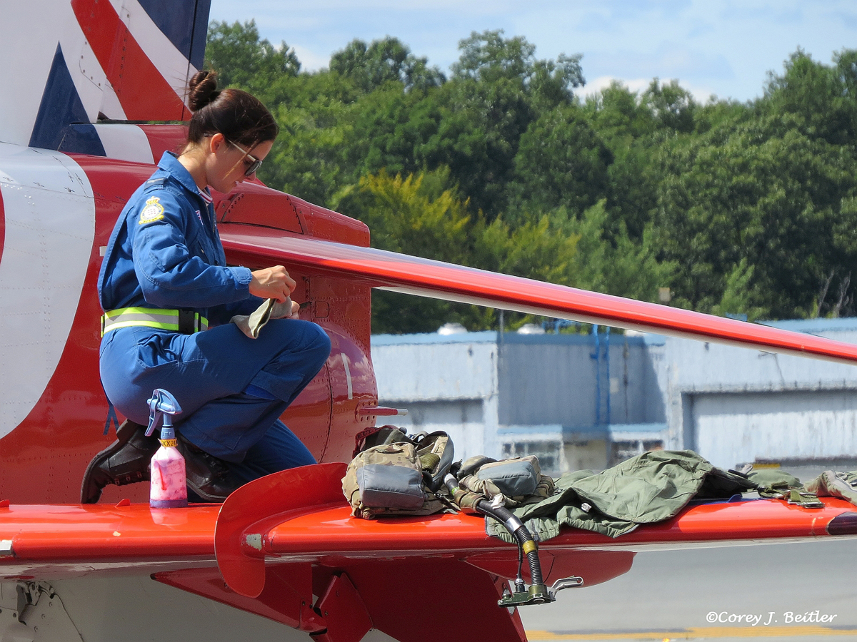 The Red Arrows also have a large engineering and technical support team that accompanies the aircraft to display locations. The over 100 members of the technical and engineering support team come from various technical and support trades within the RAF. These personnel are known as the “Blues” due to the blue uniforms they wear while assigned to the team during the display season.