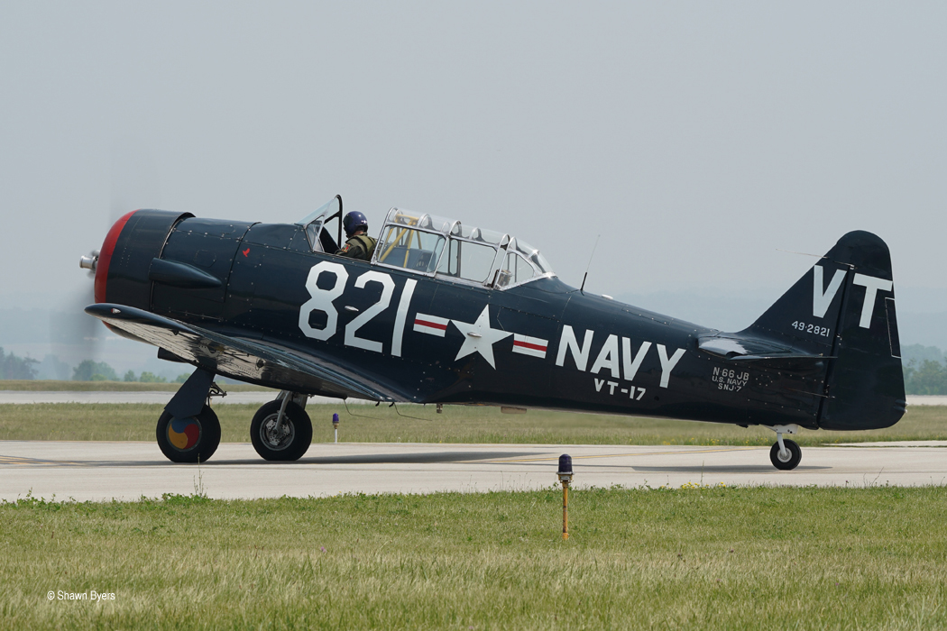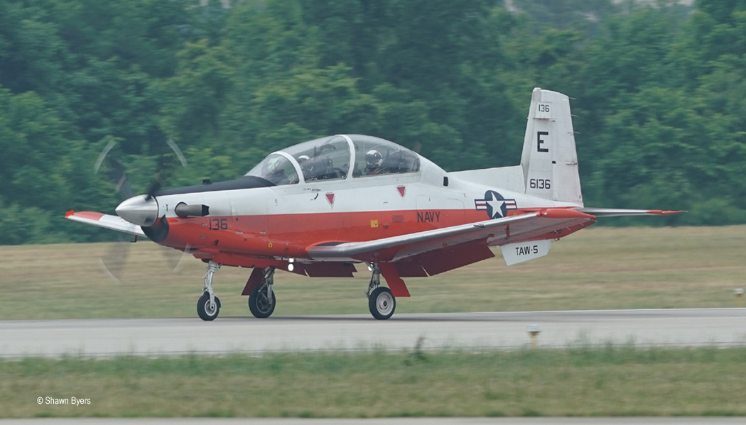 Notable static aircraft, some of which arrived on Friday and Saturday morning were the lone flyable C-123 Thunderpig, a few T-6 Texan IIs from the Navy, a Navy T-44 (King Air), the colorful Air North DC-3, and an equally striking Air Force T-1 that I caught “Iceburgh” posing in front of.