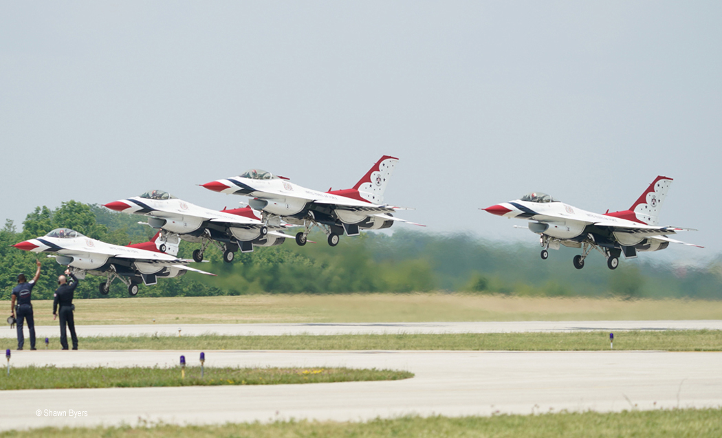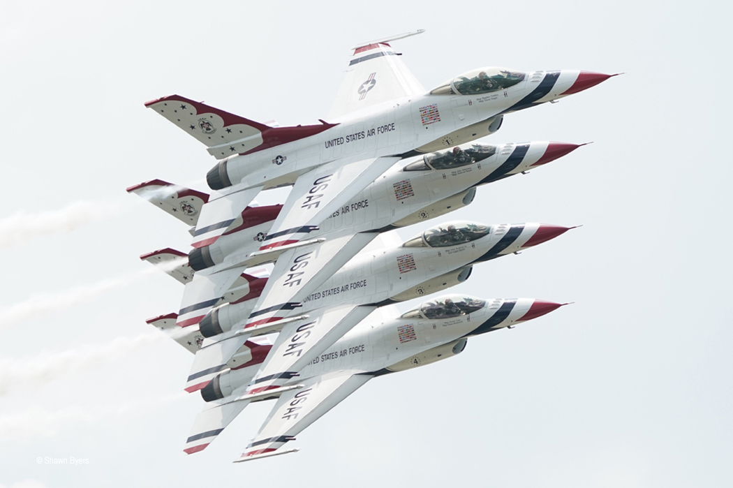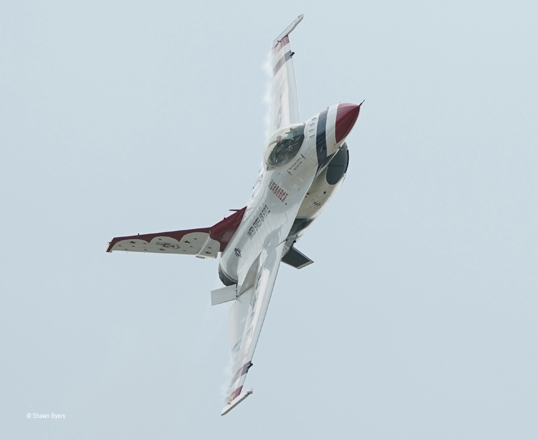 The Thunderbirds closed the show as the sun began to creep toward the showline on the left.